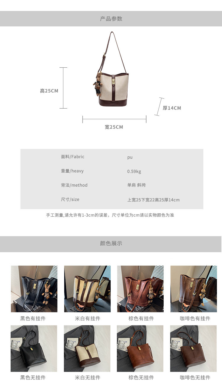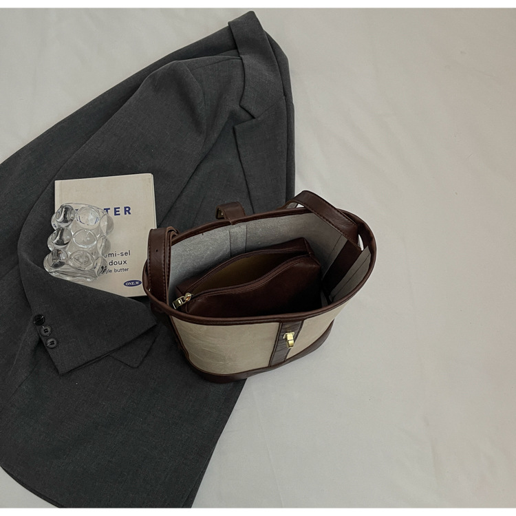 레트로 트렌디 한 언더암 가방 여성의 2024 새로운 패션 통근 버킷 가방 틈새 고급 질감 어깨 크로스 바디 백스토어 가기