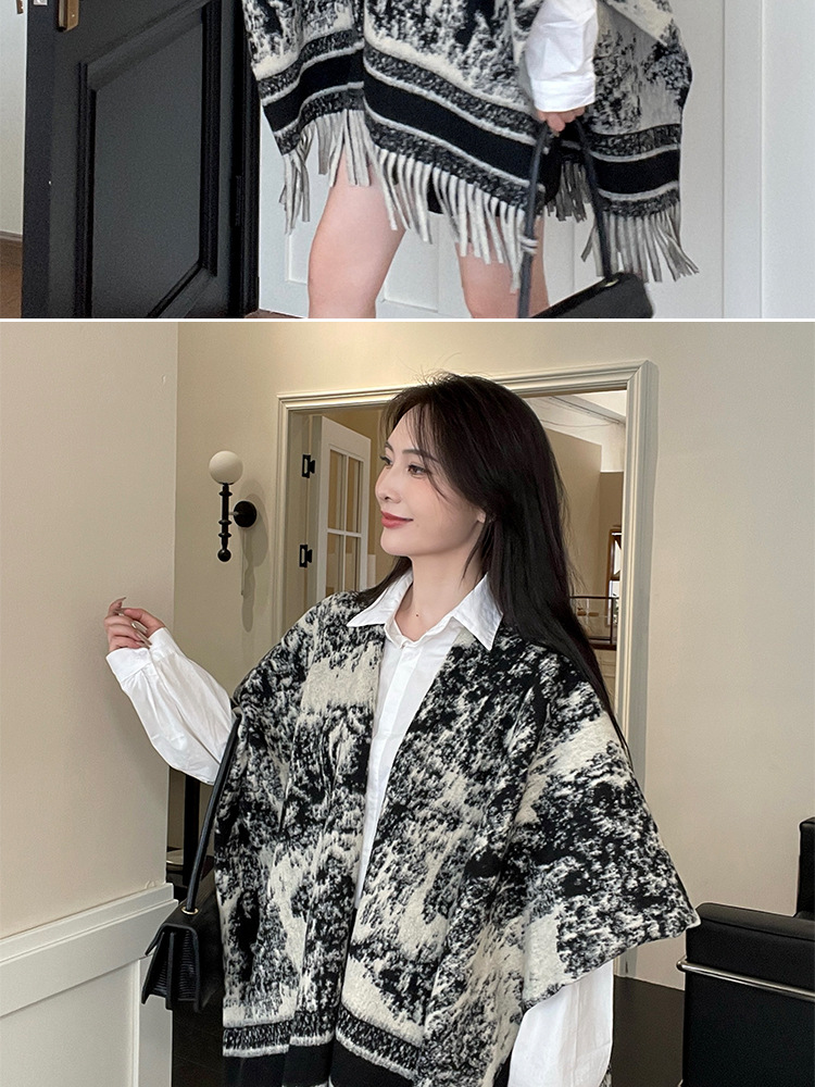 프랑스 풍경 그림 모조 캐시미어 목도리 여성 두꺼운 술 케이프 스카프 여행 따뜻한 고급 장식 왁스 코트