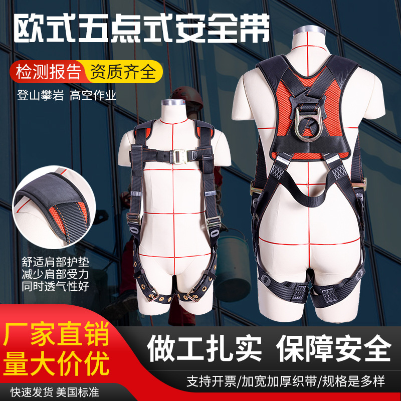 유럽식 전신 안전벨트, 고소작업 보호용 추락 방지 안전벨트, 이중 대형 후크, 완충팩, 5점식 안전벨트스토어 가기