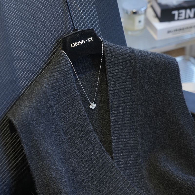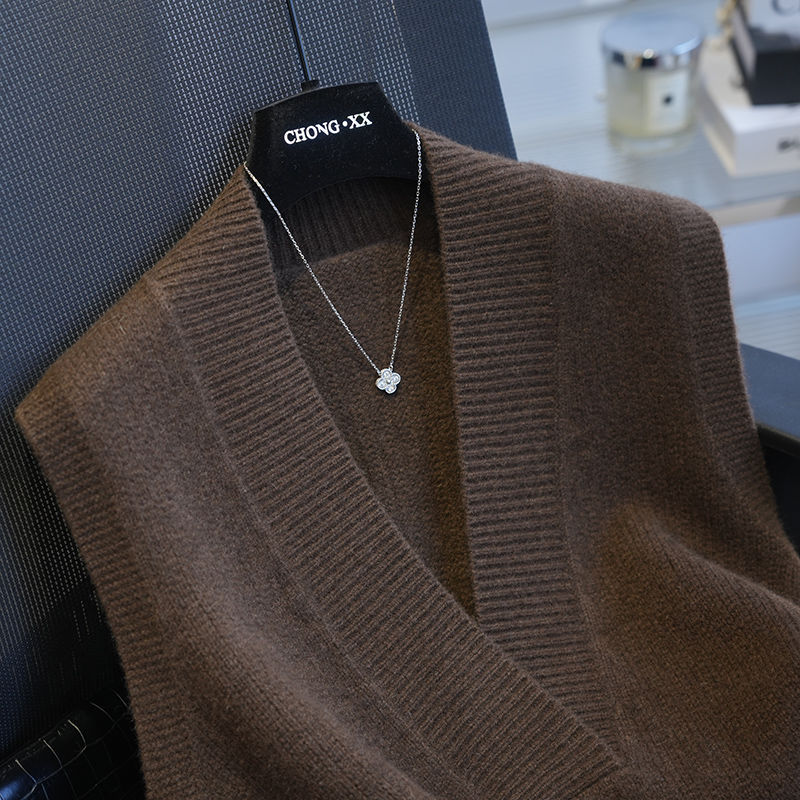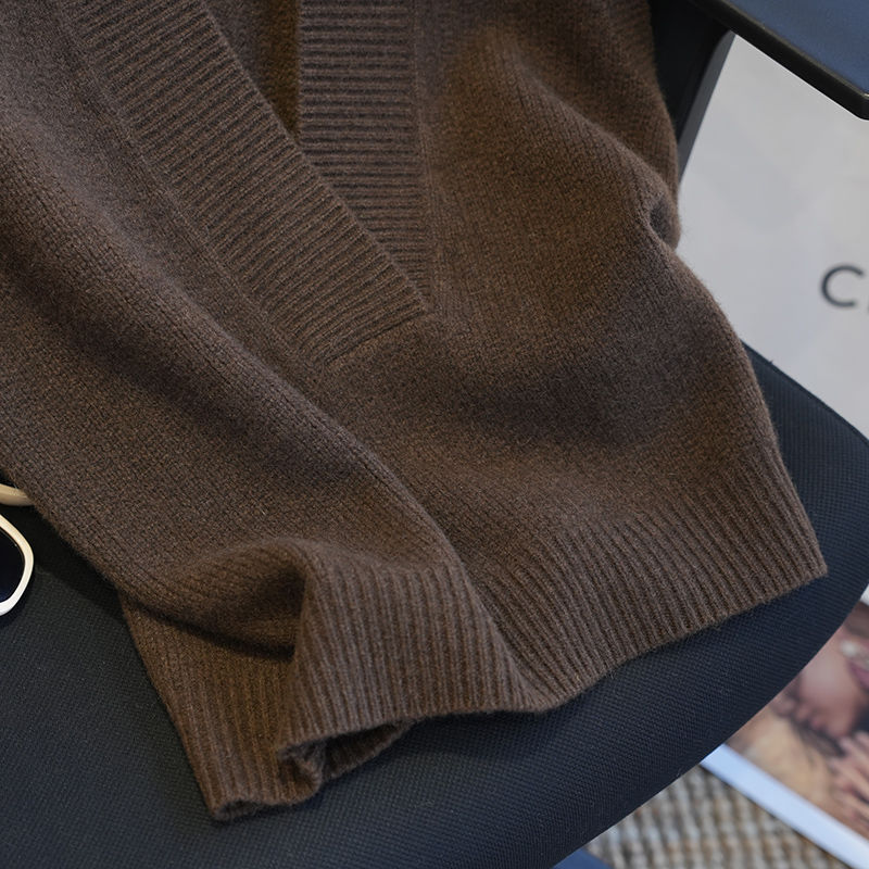 여성의 대형 V 넥 니트 조끼 느슨한 슬리밍 솔리드 컬러 민소매 스웨터 조끼 가을 및 겨울 새 조끼