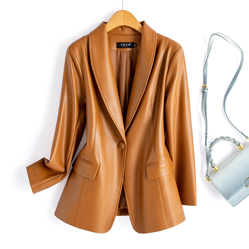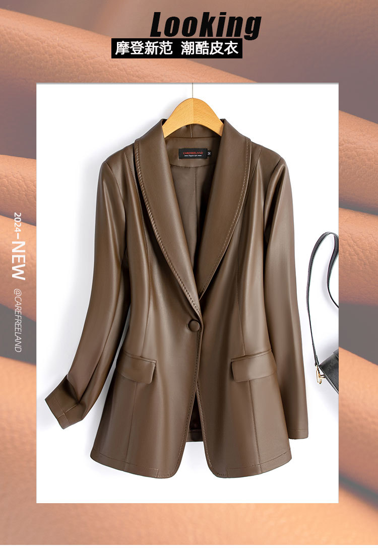 2024 가을과 겨울 새로운 한국 가죽 여성 PU 코트 여성 가죽 세트 플러스 사이즈 슬림 라이트 럭셔리 가죽 자켓스토어 가기