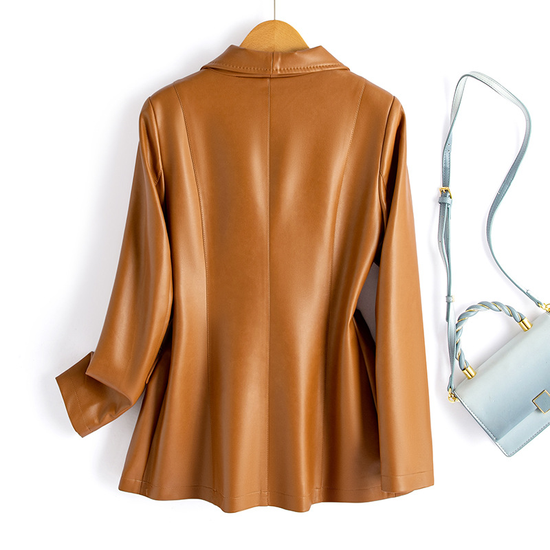 2024 가을과 겨울 새로운 한국 가죽 여성 PU 코트 여성 가죽 세트 플러스 사이즈 슬림 라이트 럭셔리 가죽 자켓