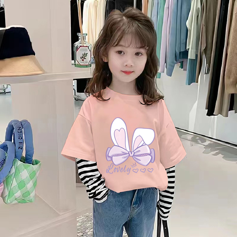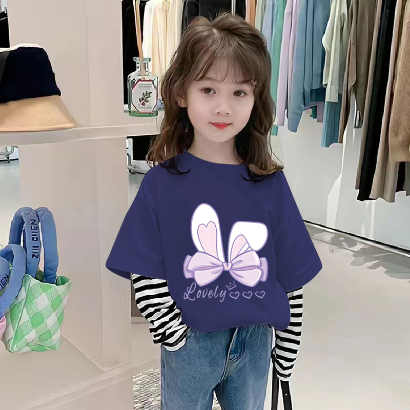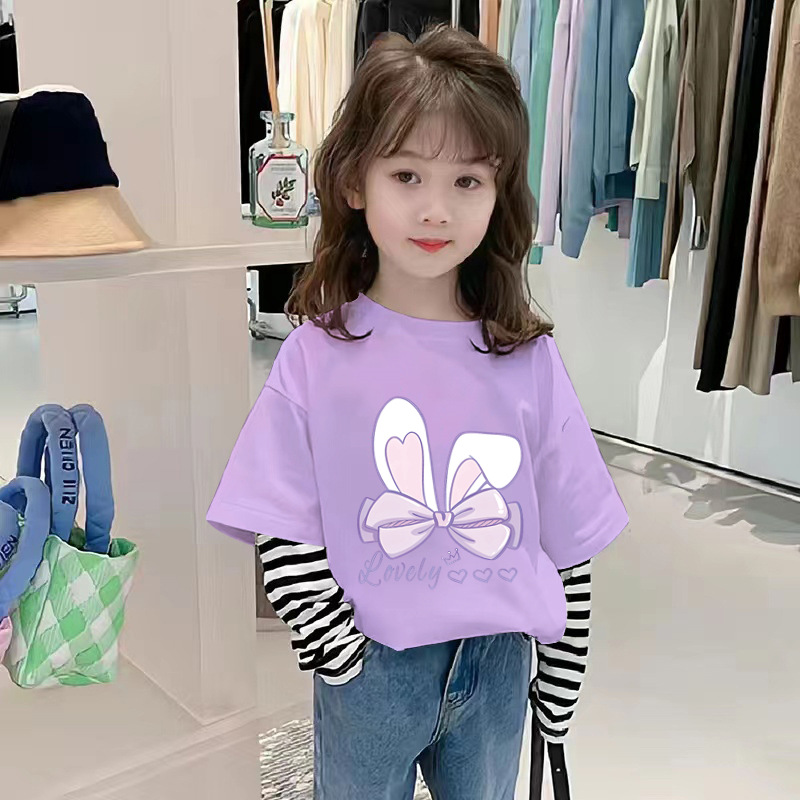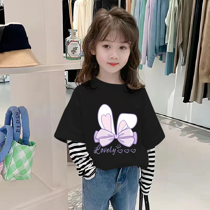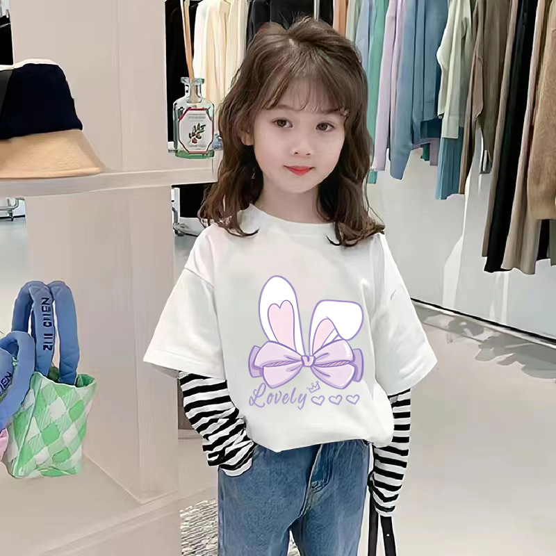 G2074 # 여자 긴팔 면화 티셔츠 가짜 두 가지 새로운 외국 스타일 어린이 가을 코트 아기 봄과 가을 어린이 조수 T