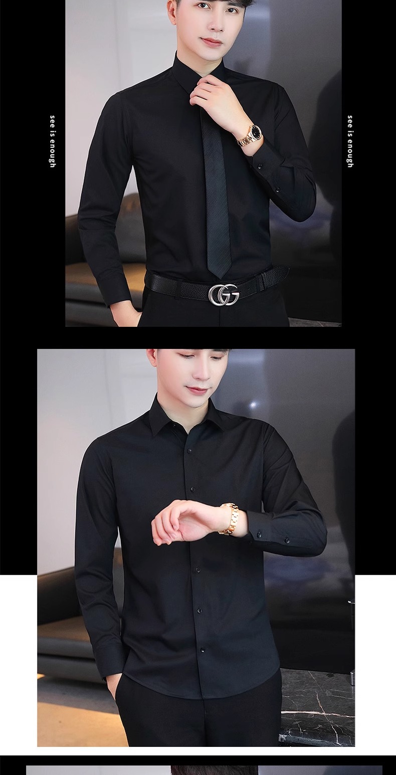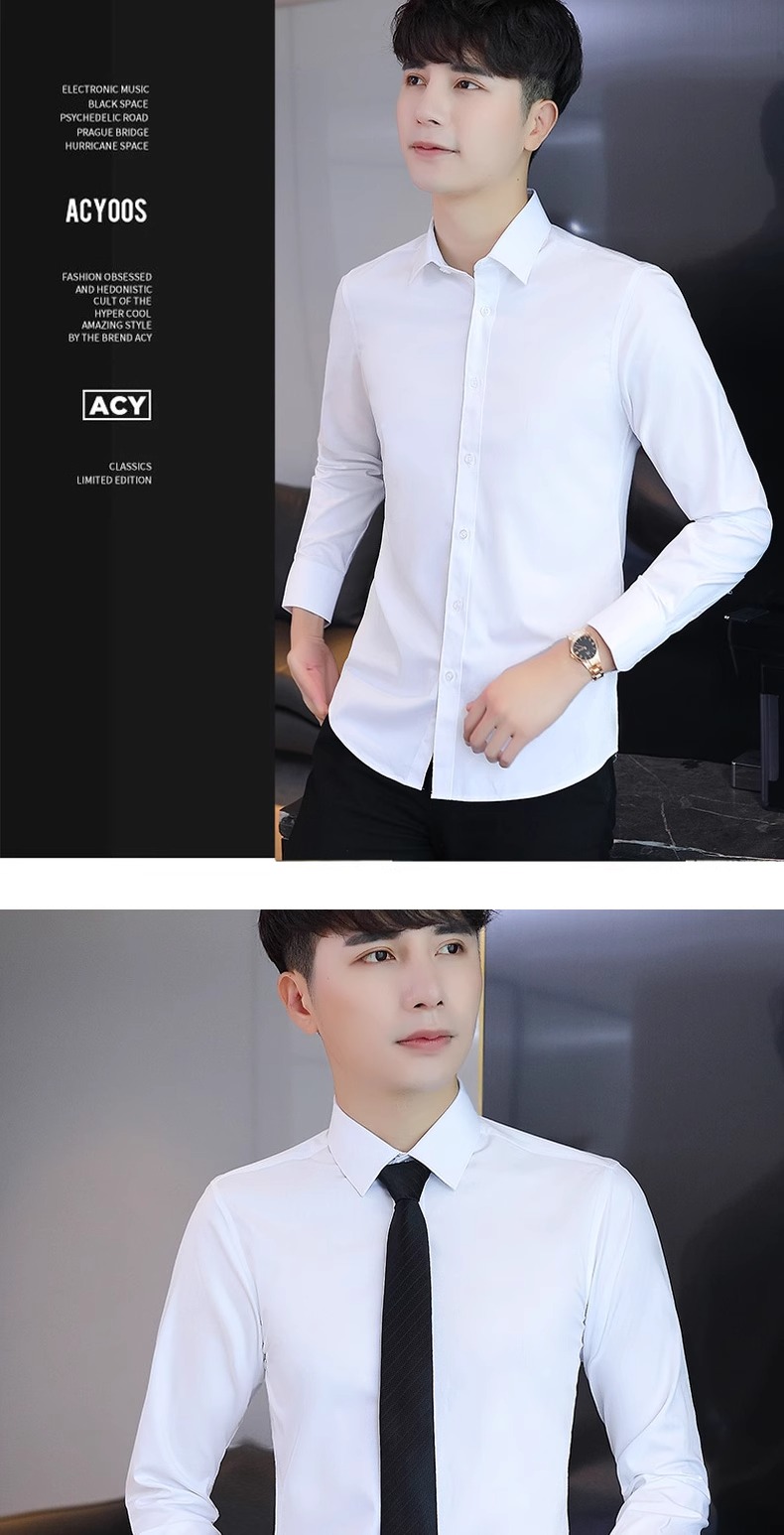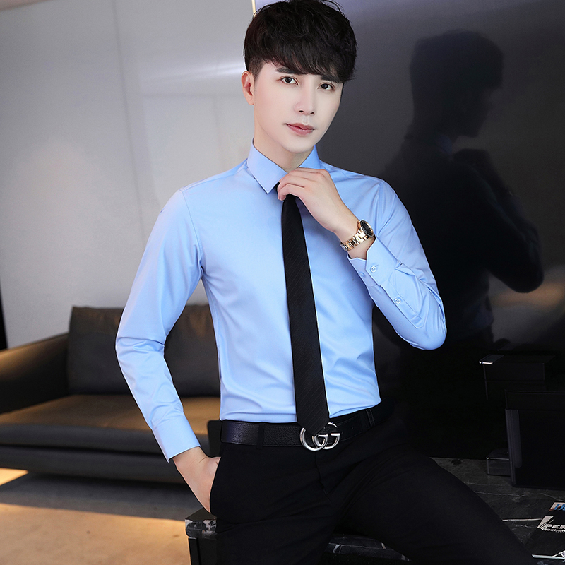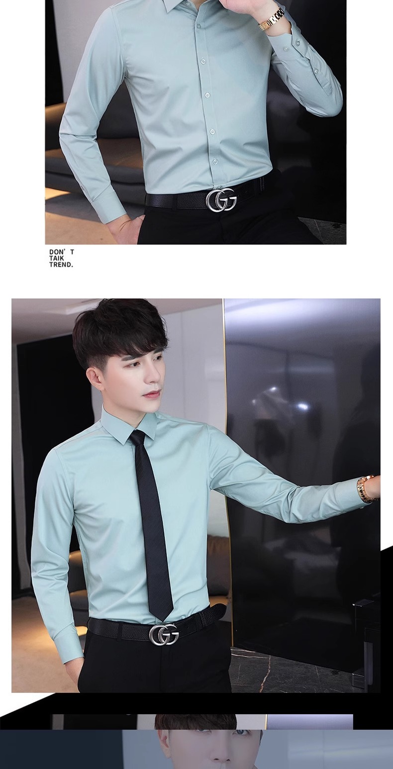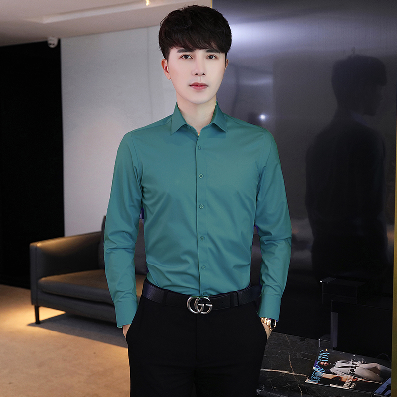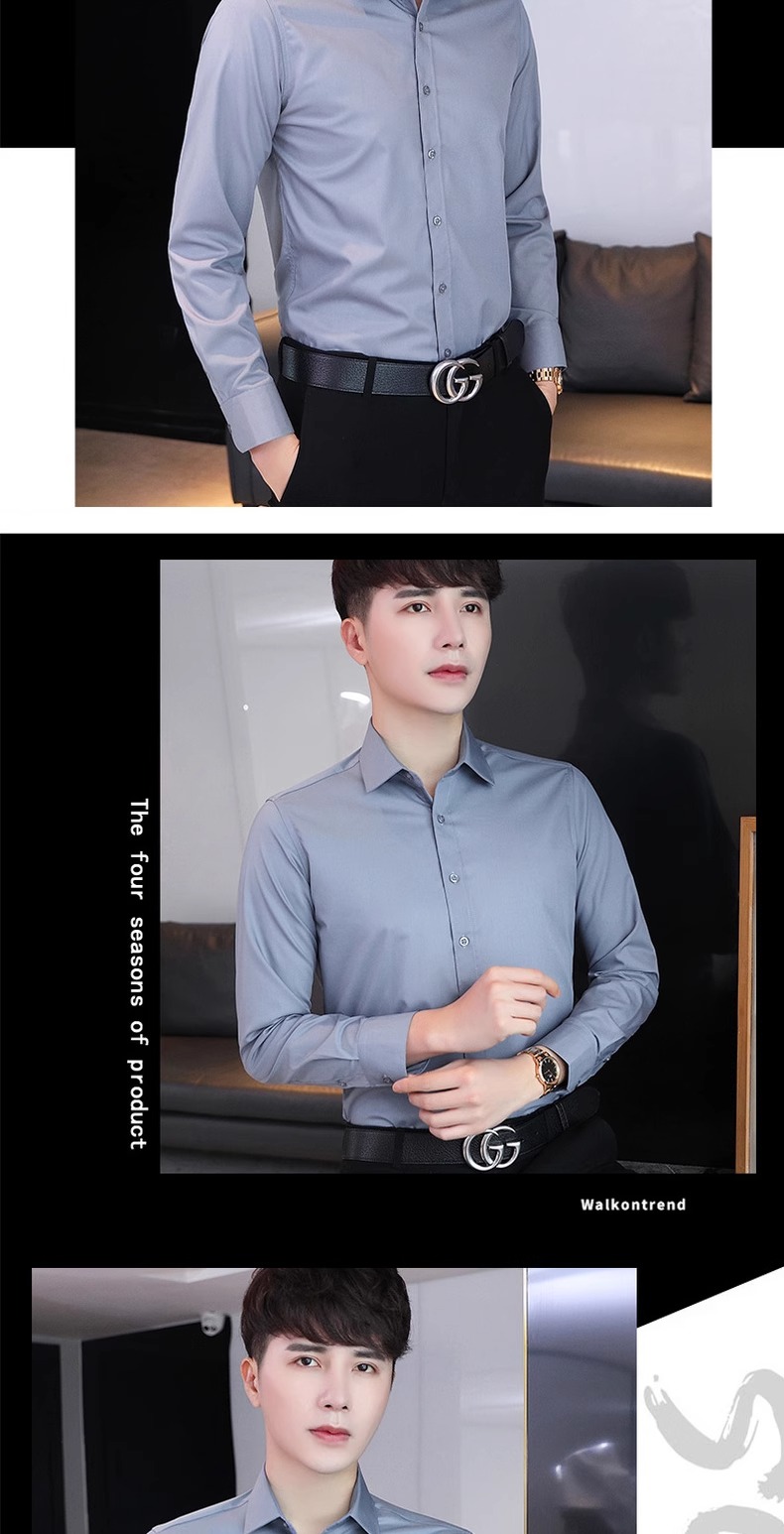 비즈니스 캐주얼 비 다림질 셔츠 남성용 긴팔 봄과 가을 스트레치 슬림 핏 셔츠 한국 유행 잘 생긴 셔츠