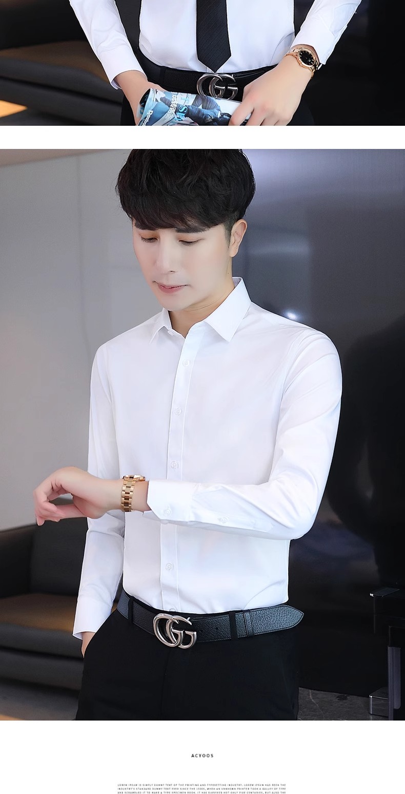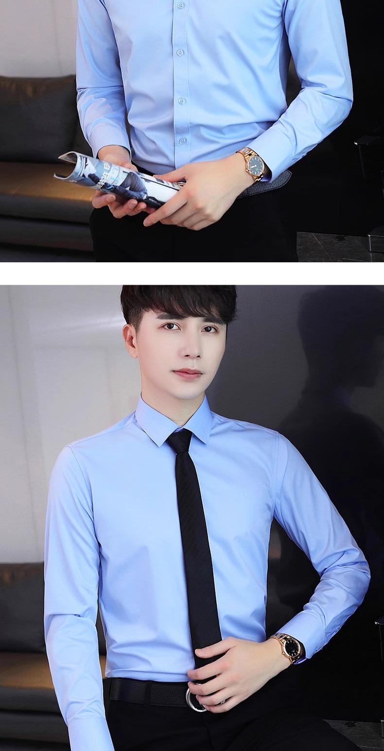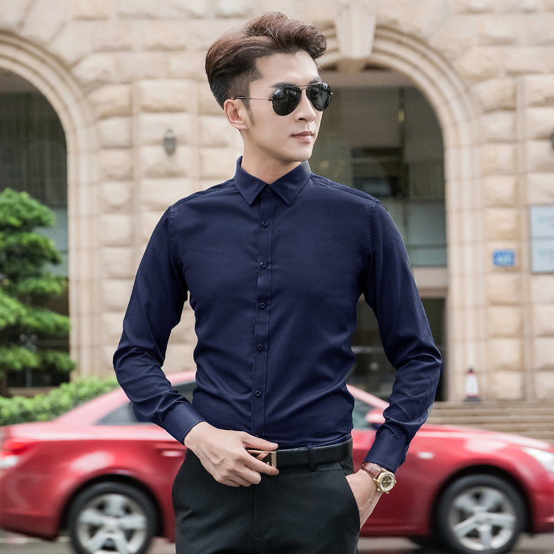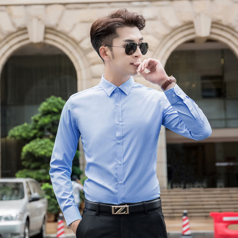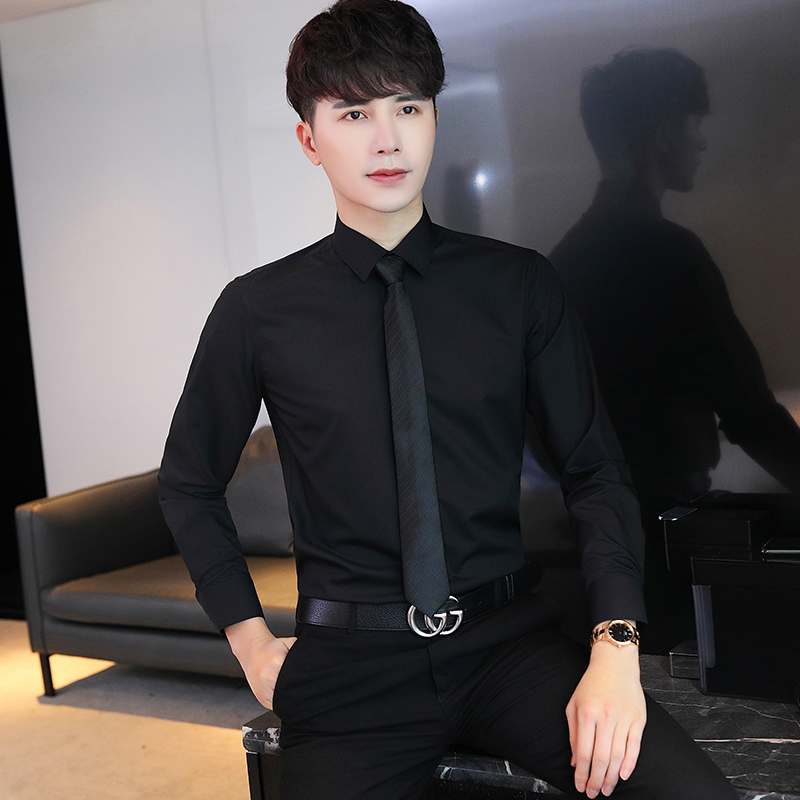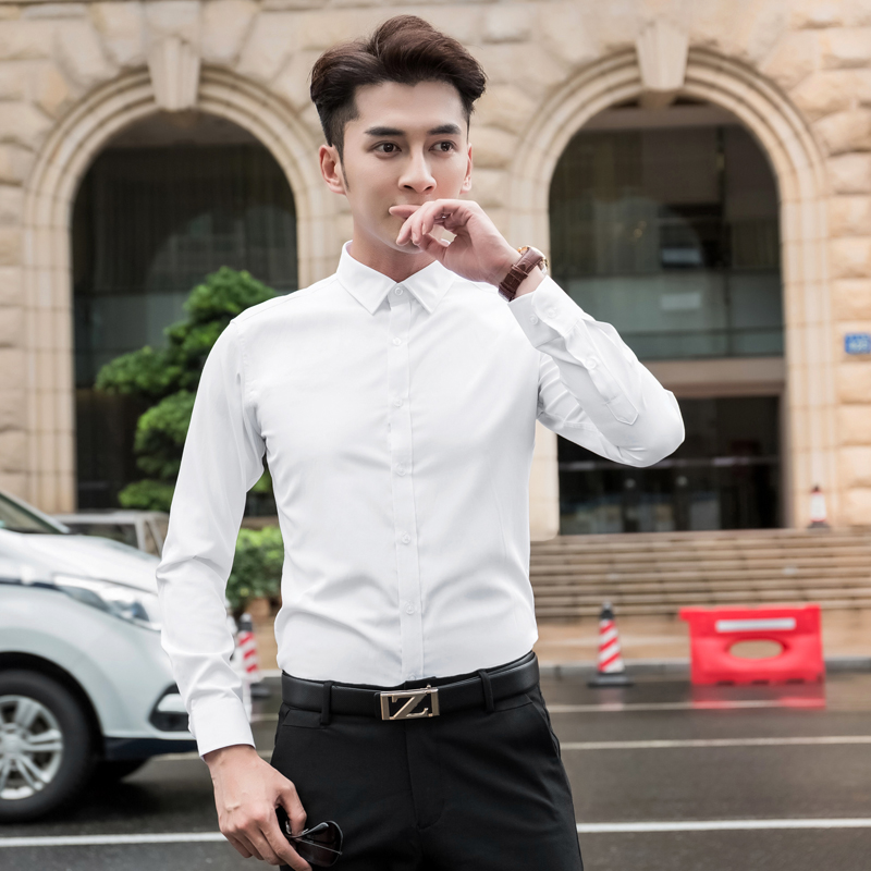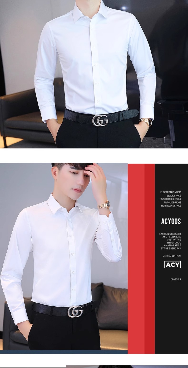 비즈니스 캐주얼 비 다림질 셔츠 남성용 긴팔 봄과 가을 스트레치 슬림 핏 셔츠 한국 유행 잘 생긴 셔츠