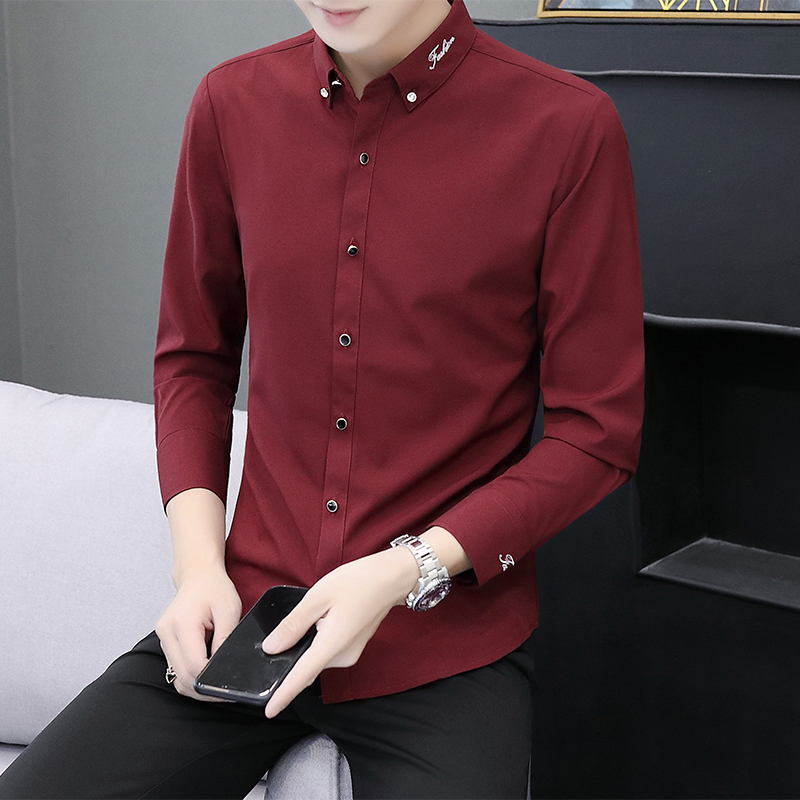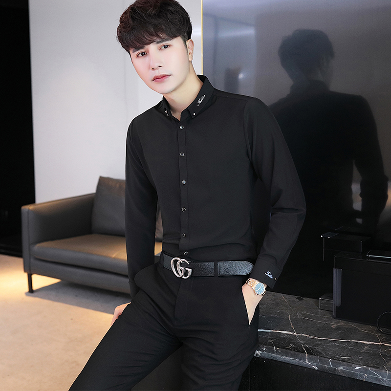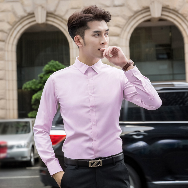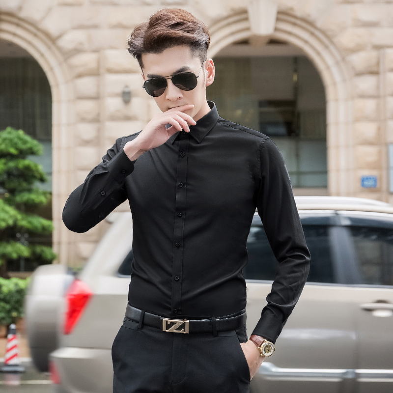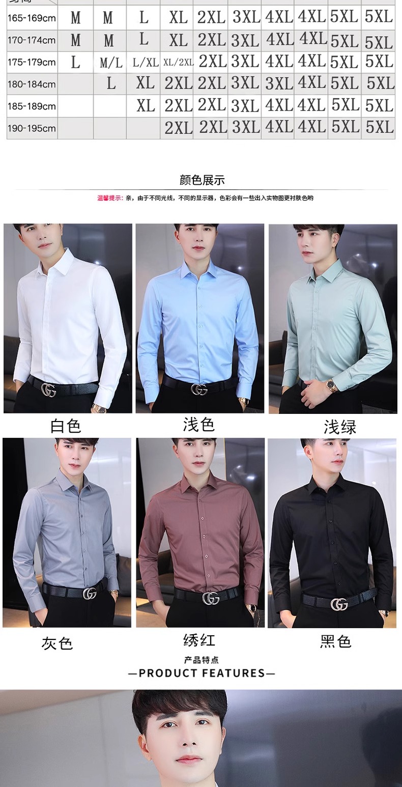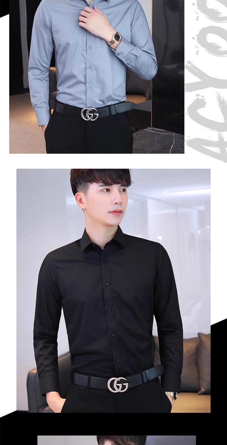 비즈니스 캐주얼 비 다림질 셔츠 남성용 긴팔 봄과 가을 스트레치 슬림 핏 셔츠 한국 유행 잘 생긴 셔츠