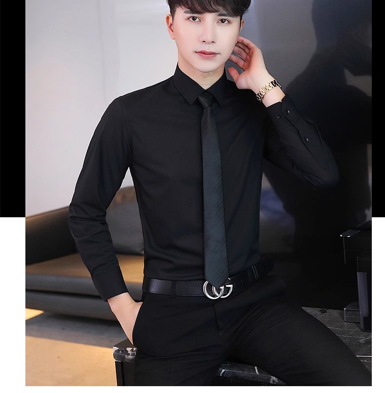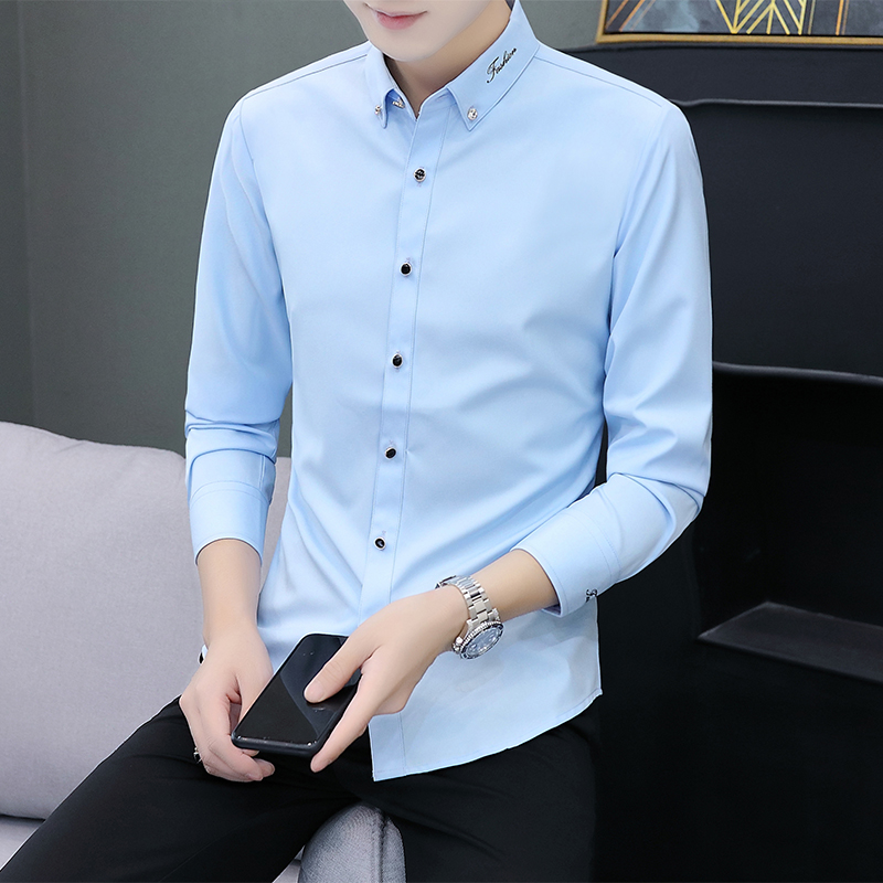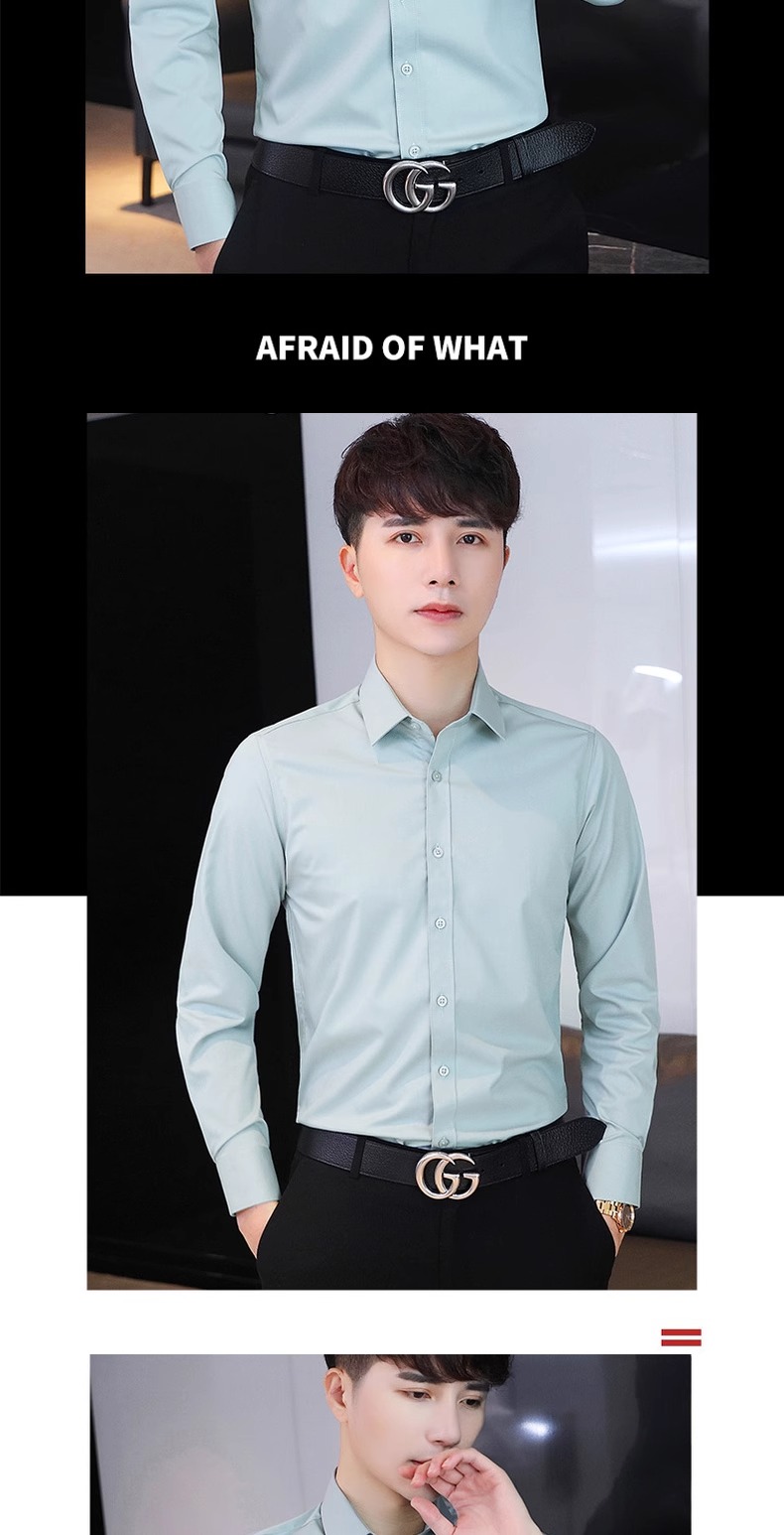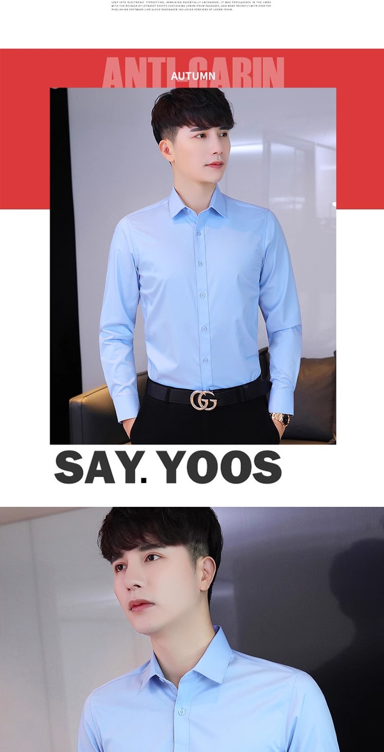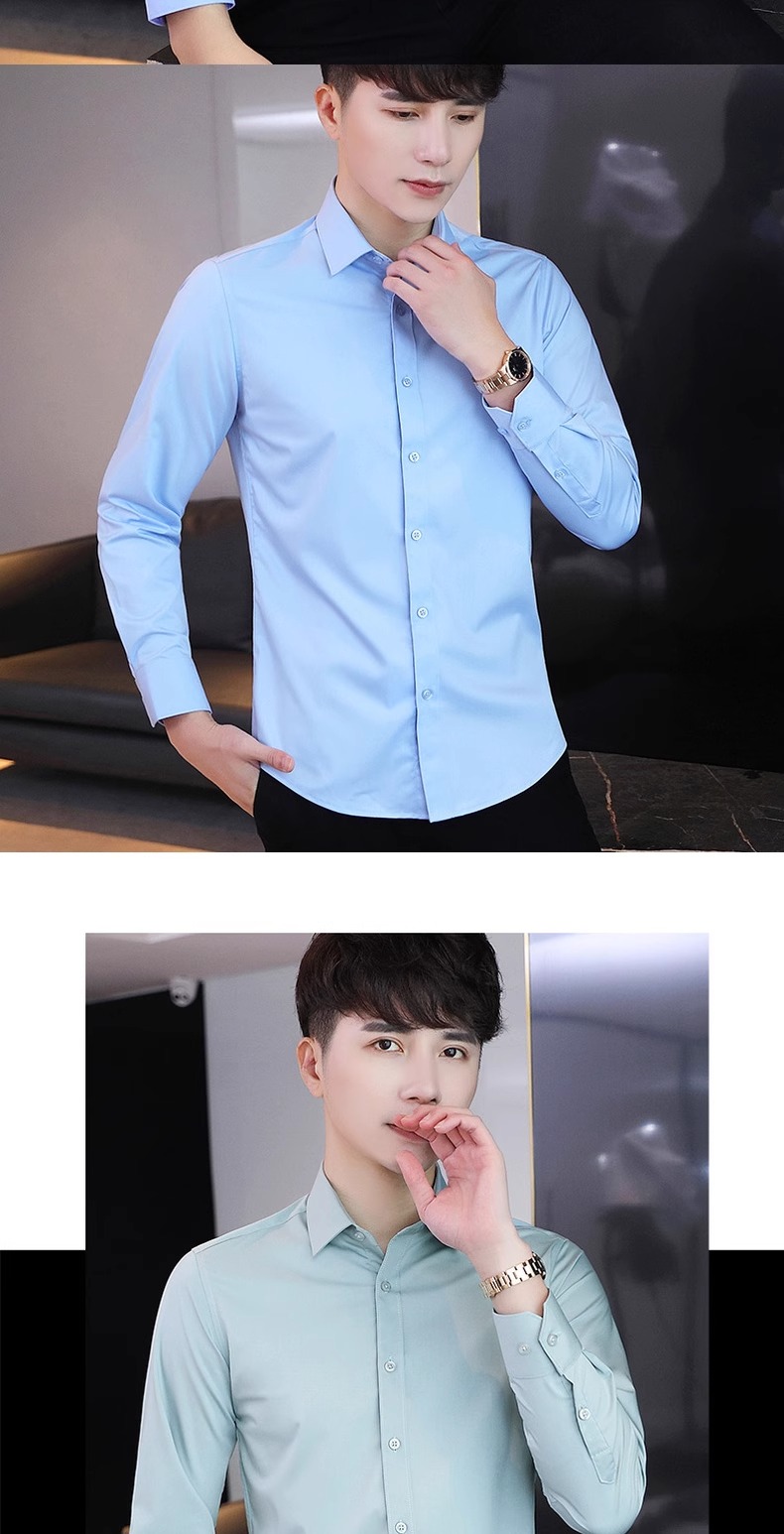 비즈니스 캐주얼 비 다림질 셔츠 남성용 긴팔 봄과 가을 스트레치 슬림 핏 셔츠 한국 유행 잘 생긴 셔츠스토어 가기