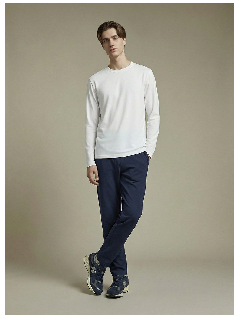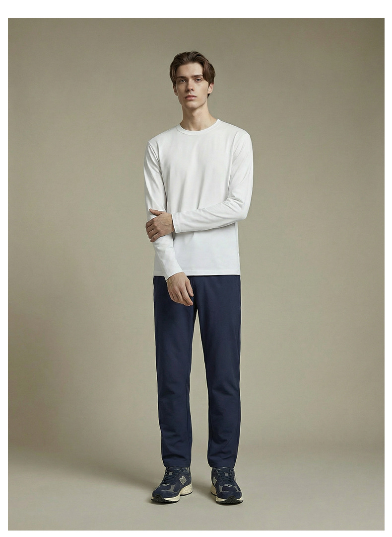 [엄선한 좋은 상품] 액상 암모니아 50수 신강 롱 스테이플 피마 코튼 퓨어 코튼 화이트 T 솔리드 컬러 긴팔 티셔츠 남성용 베이스 레이어