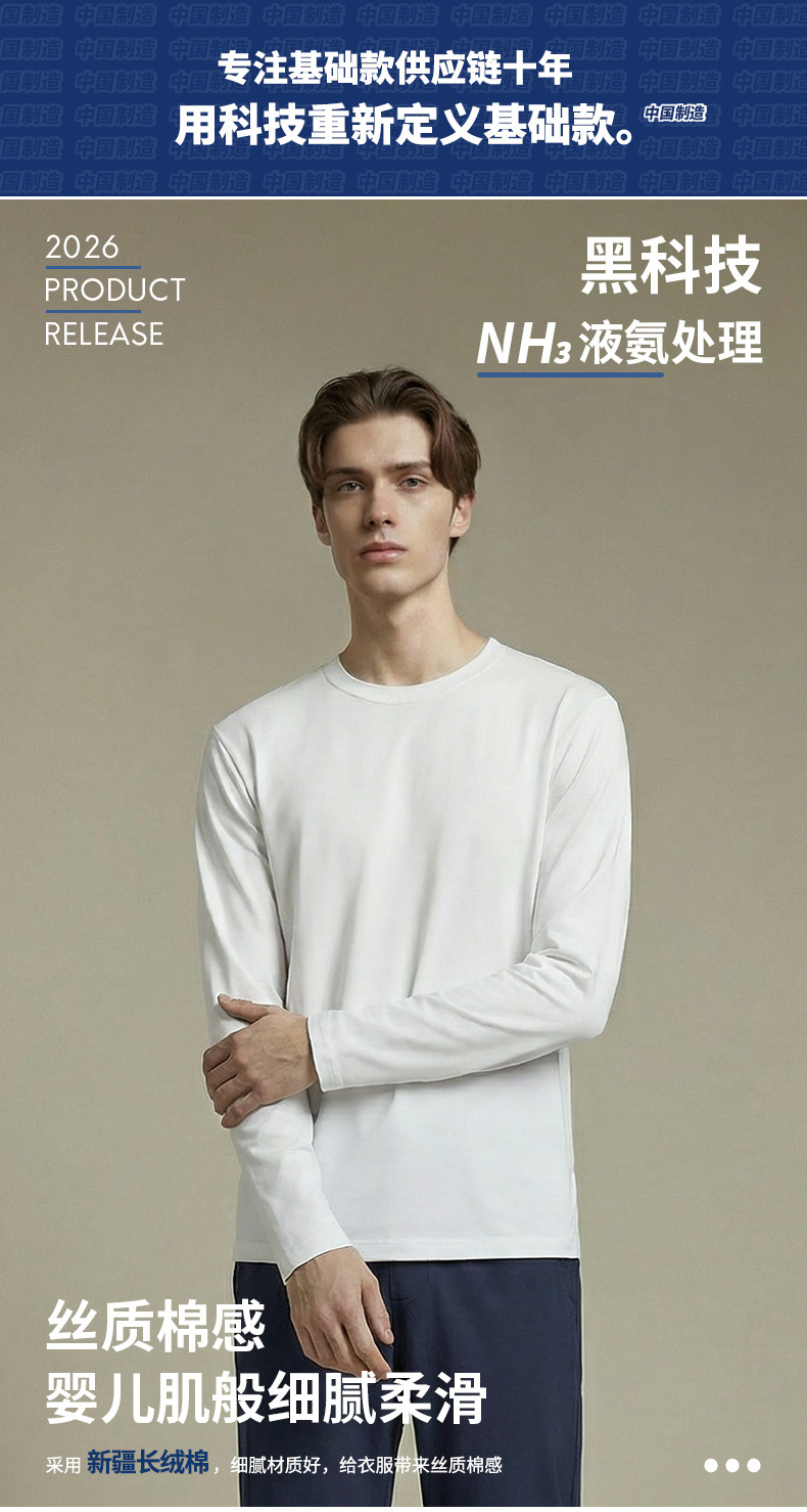 [엄선한 좋은 상품] 액상 암모니아 50수 신강 롱 스테이플 피마 코튼 퓨어 코튼 화이트 T 솔리드 컬러 긴팔 티셔츠 남성용 베이스 레이어스토어 가기