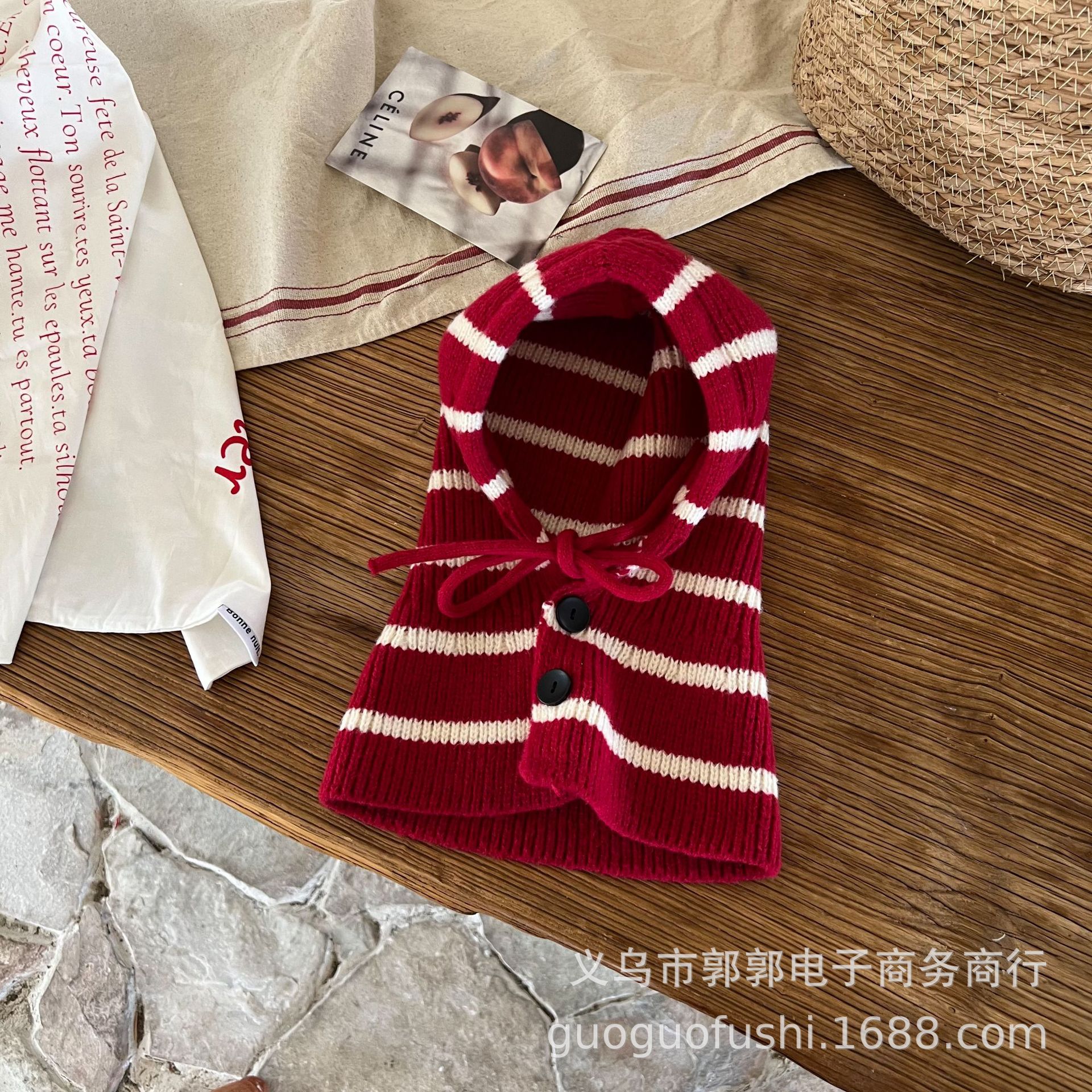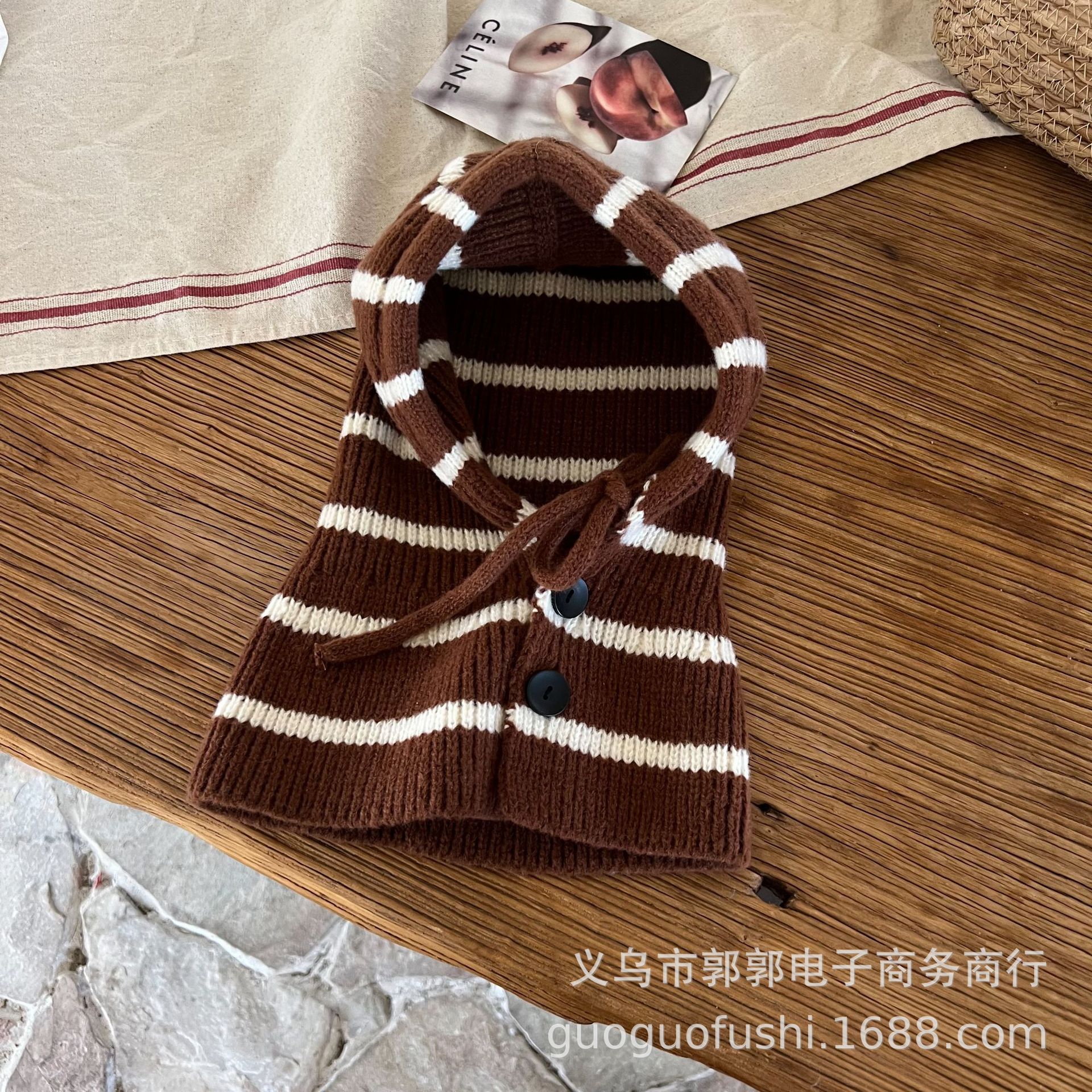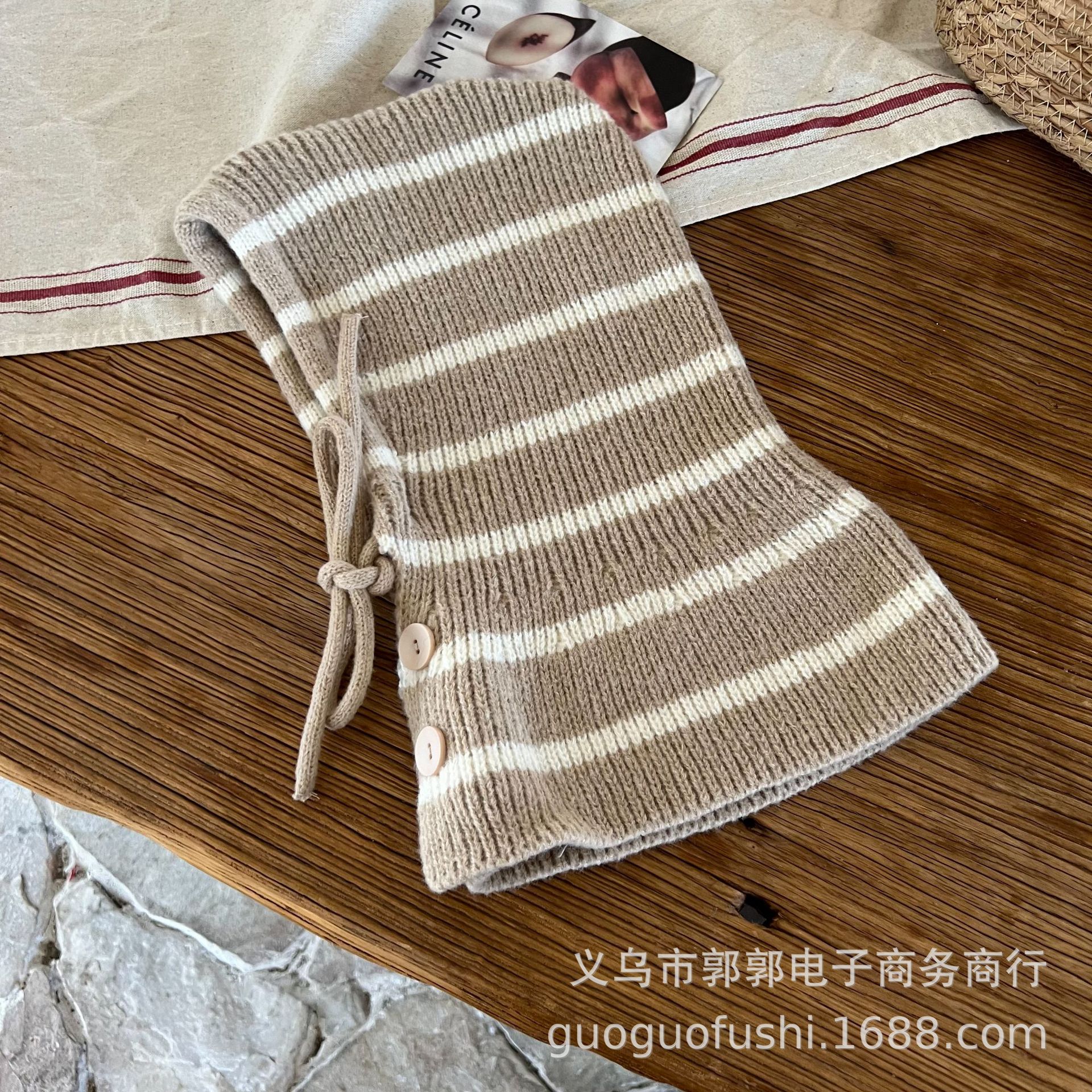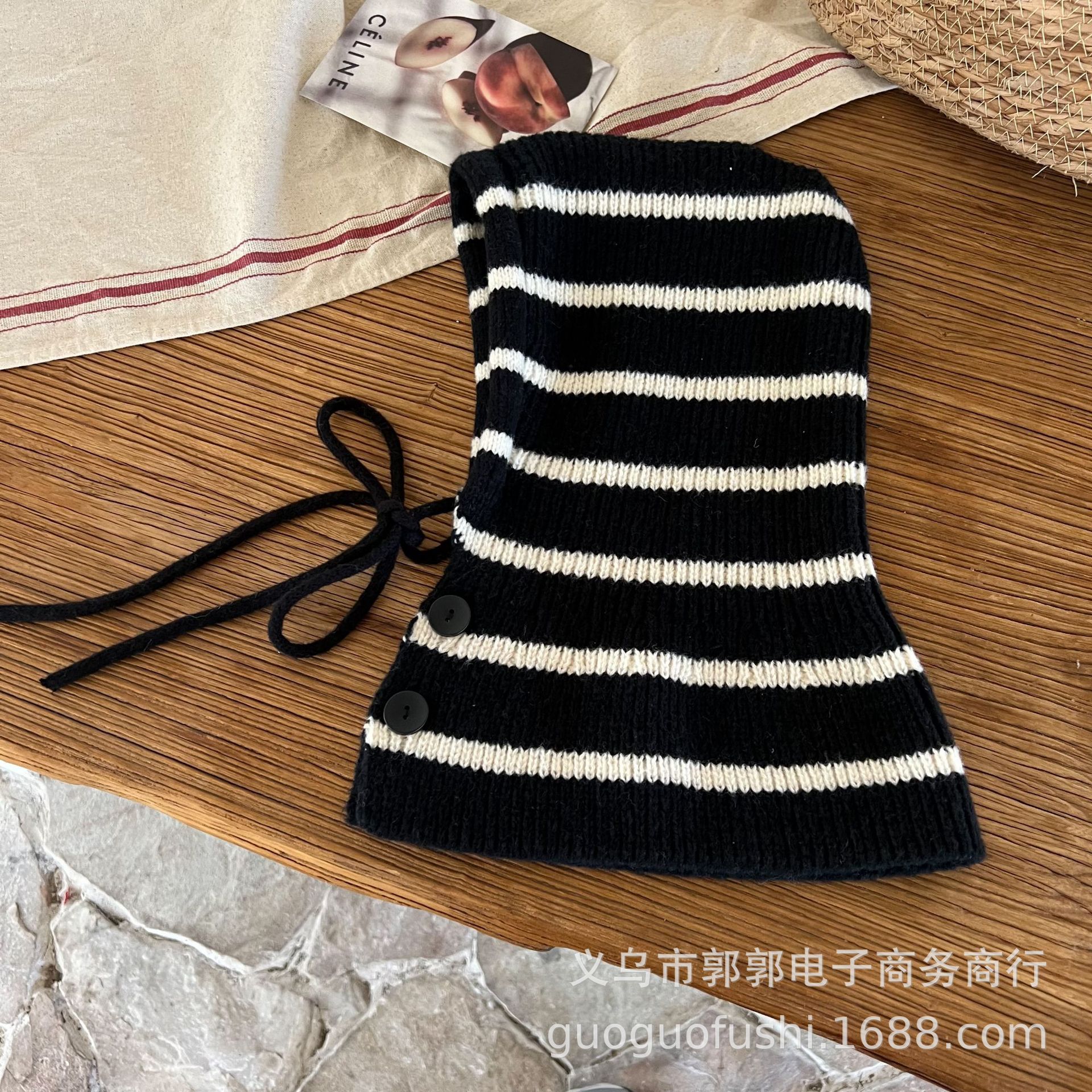 남학생과 여학생을위한 최신 유행 흑백 줄무늬 어린이 발라 클라 바 모자 겨울 따뜻한 모직 모자 스카프