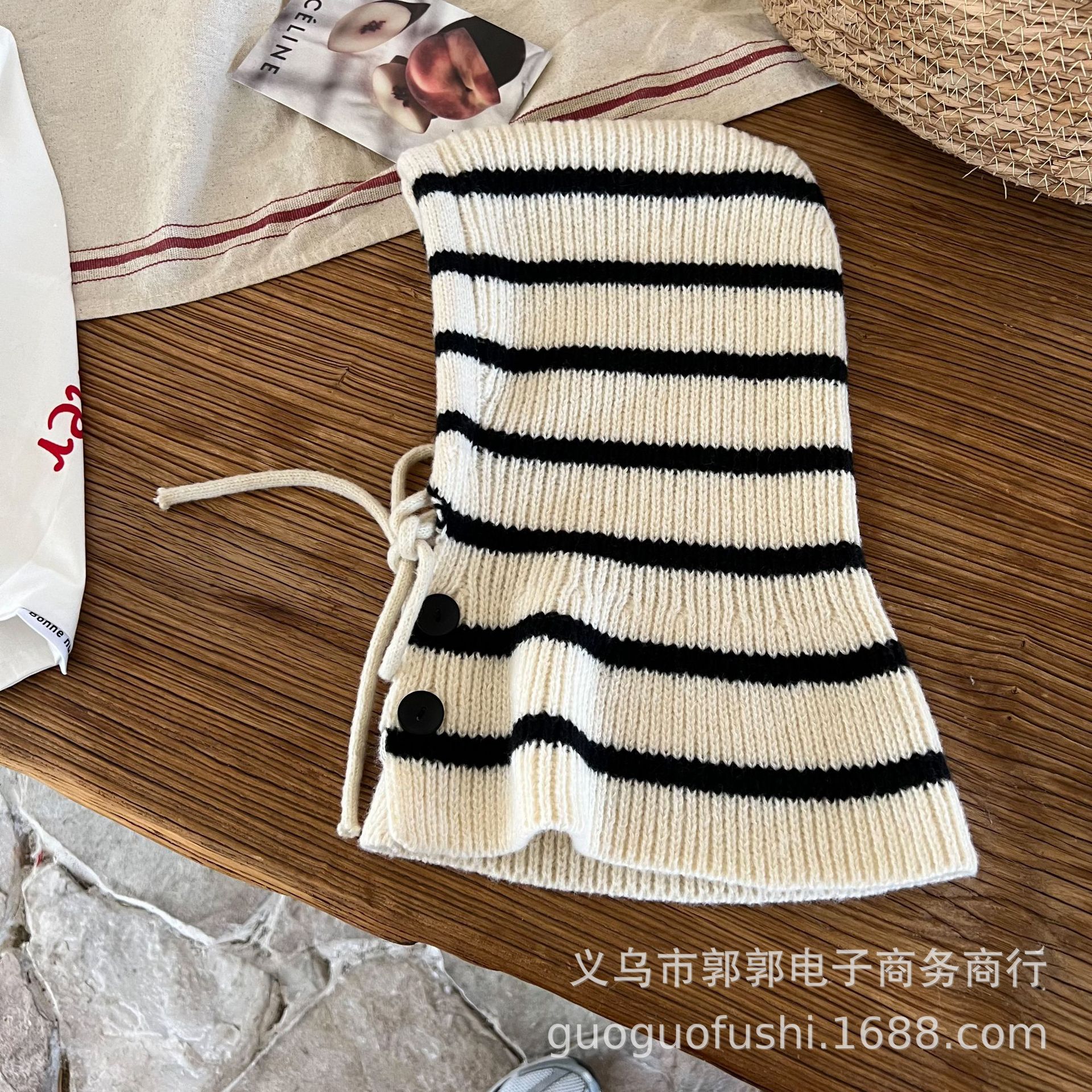 남학생과 여학생을위한 최신 유행 흑백 줄무늬 어린이 발라 클라 바 모자 겨울 따뜻한 모직 모자 스카프스토어 가기