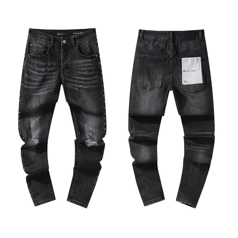 보라색 브랜드 국경 간 스플래시 잉크 인쇄 하이 스트리트 레트로 찢어진 캐주얼 트렌디 데님 바지스토어 가기