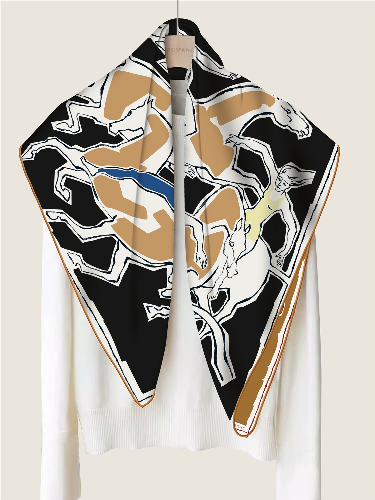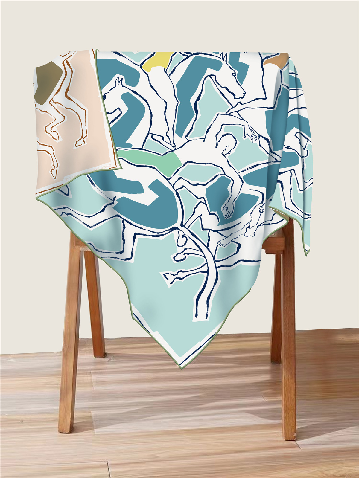 국경 간 폭발 여름 실크 같은 트윌 실크 여성 90 스퀘어 타월 양면 인쇄 같은 꽃과 컬러 절묘한 수공 가장자리