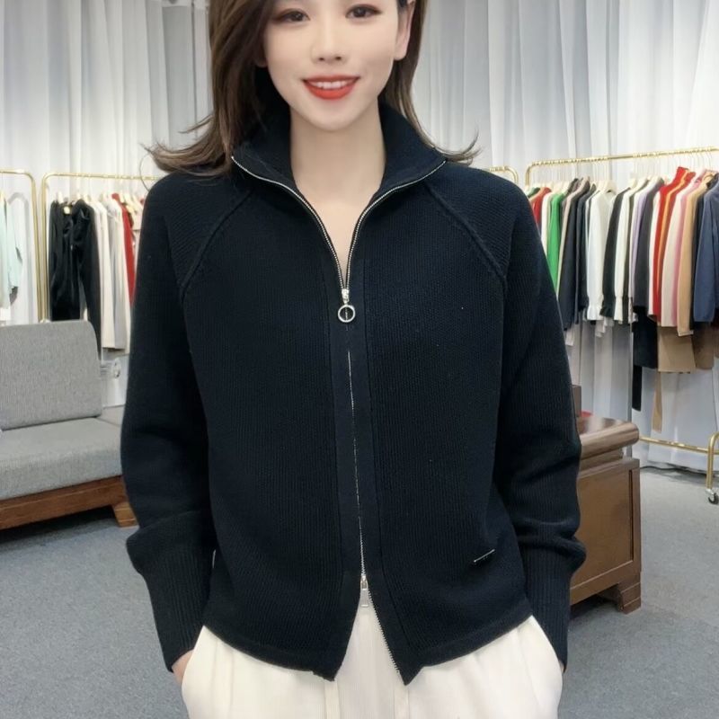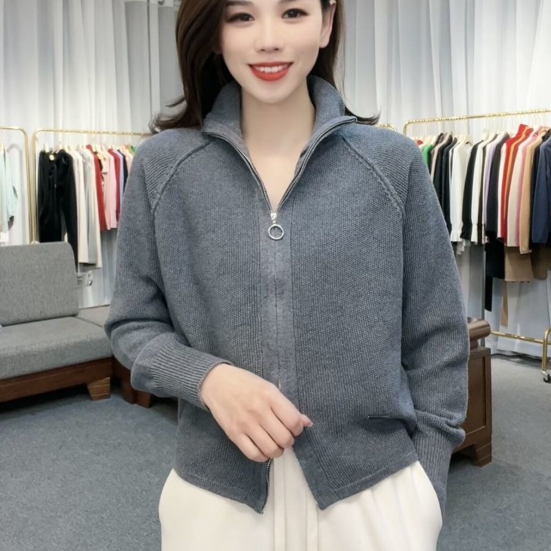 더블 지퍼 높은 목 자수 니트 카디건 재킷 여성의 봄과 가을 새로운 스포츠 캐주얼 스타일 우아한 나이 감소 탑 트렌디스토어 가기