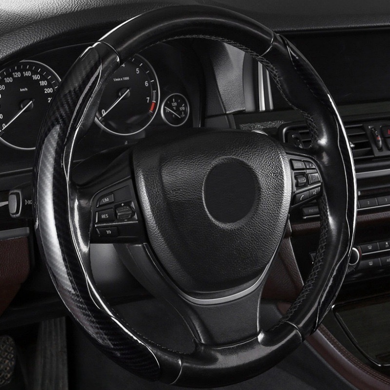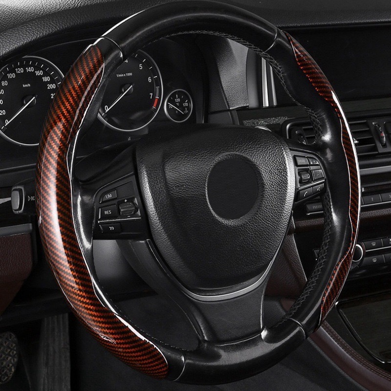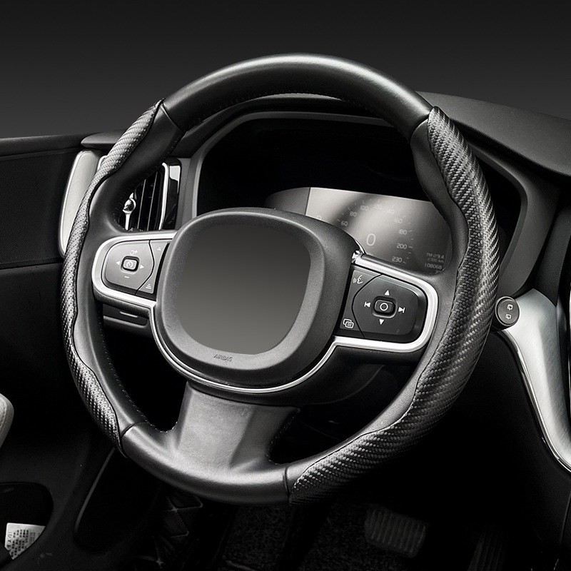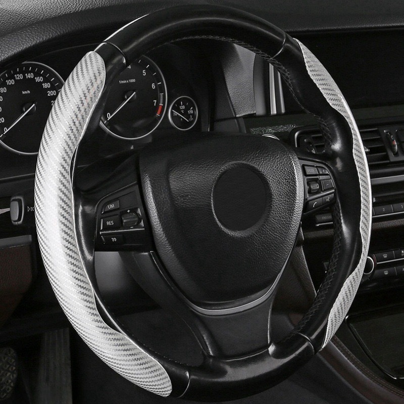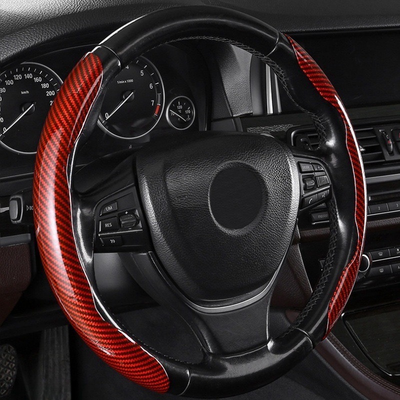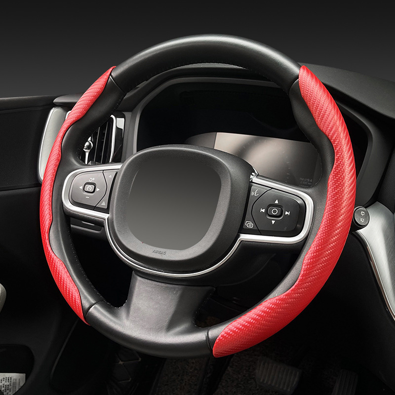 자동차 스티어링 휠 커버 탄소 섬유 패턴 땀 흡수성 미끄럼 방지 초박형 자동차 핸들 커버 사계절 유니버설 플러시 하프 세트 카드 커버 크로스 테두리스토어 가기