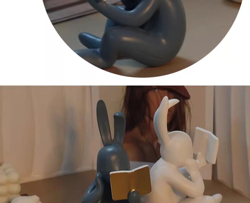 현대 미술 독서 토끼 장식품 빛 고급 미니멀리스트 거실 입구 연구 디스플레이 캐비닛 창조적 인 어린이 방 장식