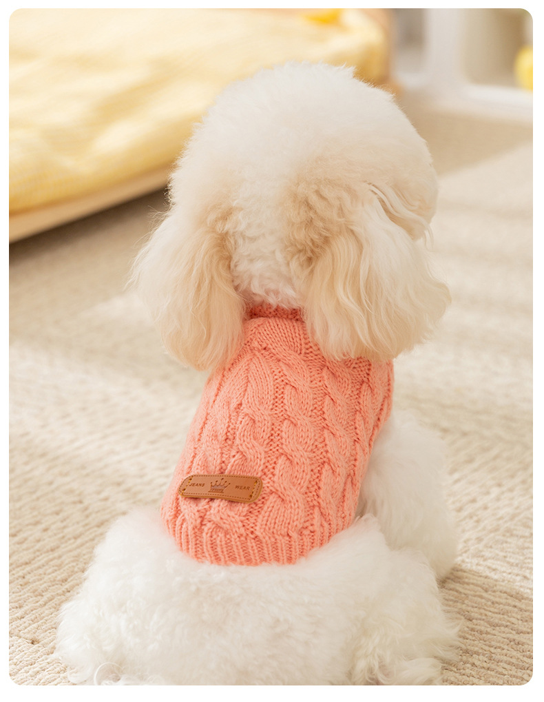 개 옷 가을과 겨울 간단한 스트랩 니트 스웨터 따뜻한 두 다리 중형 개 테디 Bixu 애완 동물 옷스토어 가기