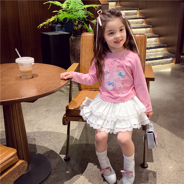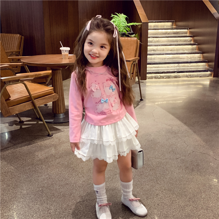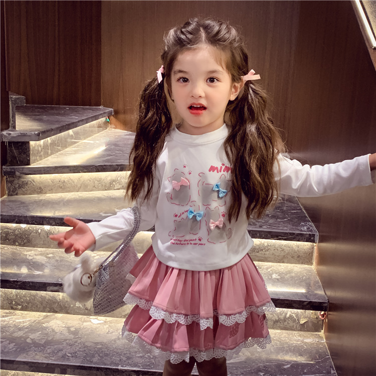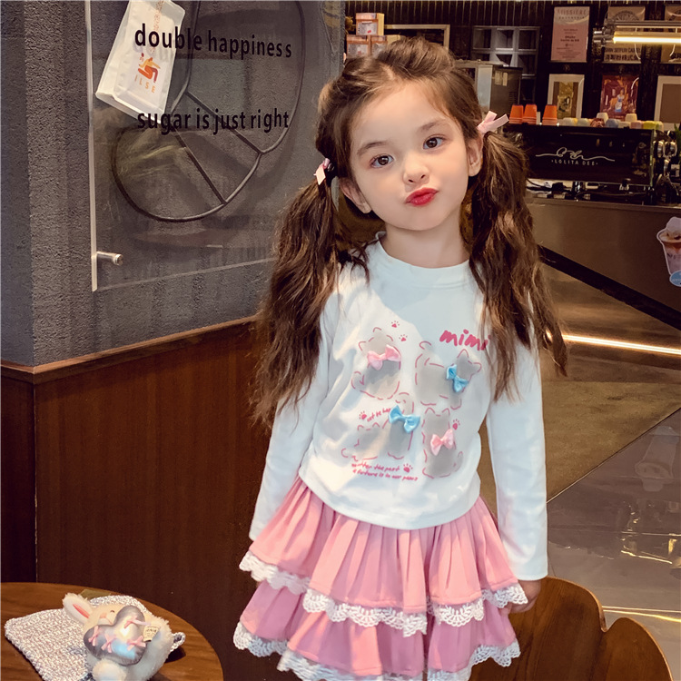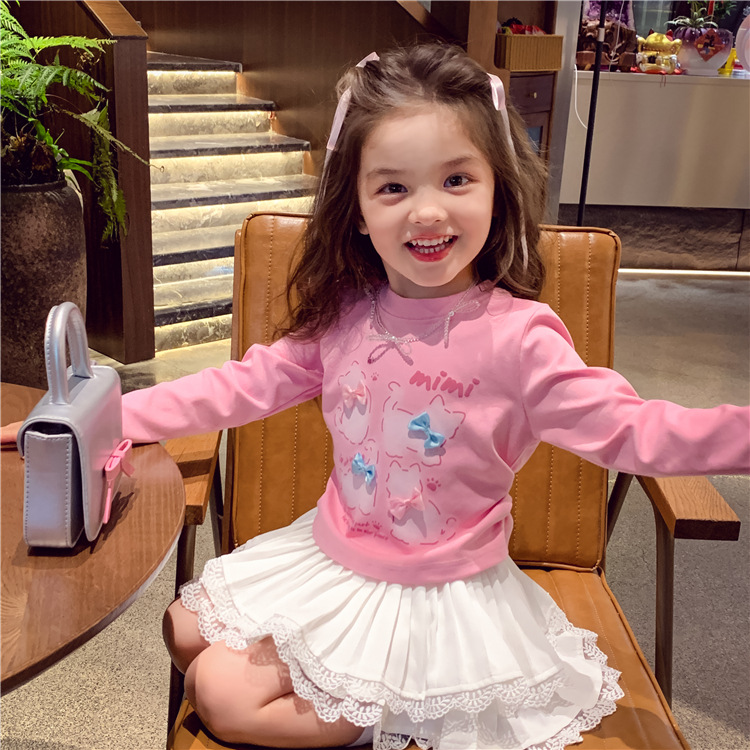 어린이 가을 새로운 긴 소매 최고 어린이 봄과 가을 내부 티셔츠 만화 인쇄 소녀 기본 셔츠 도매스토어 가기