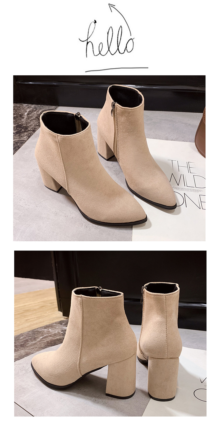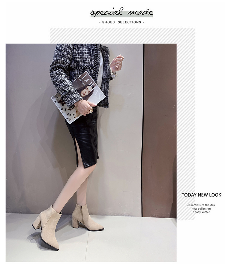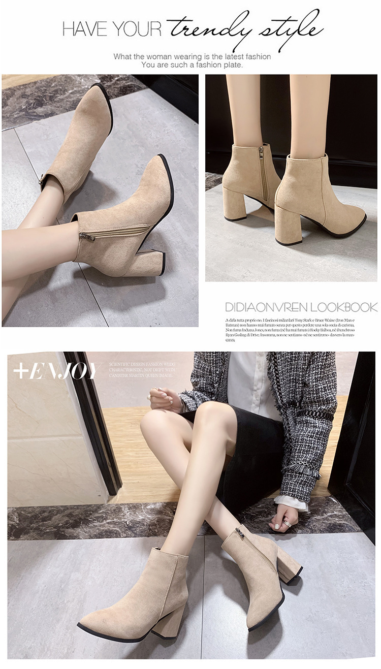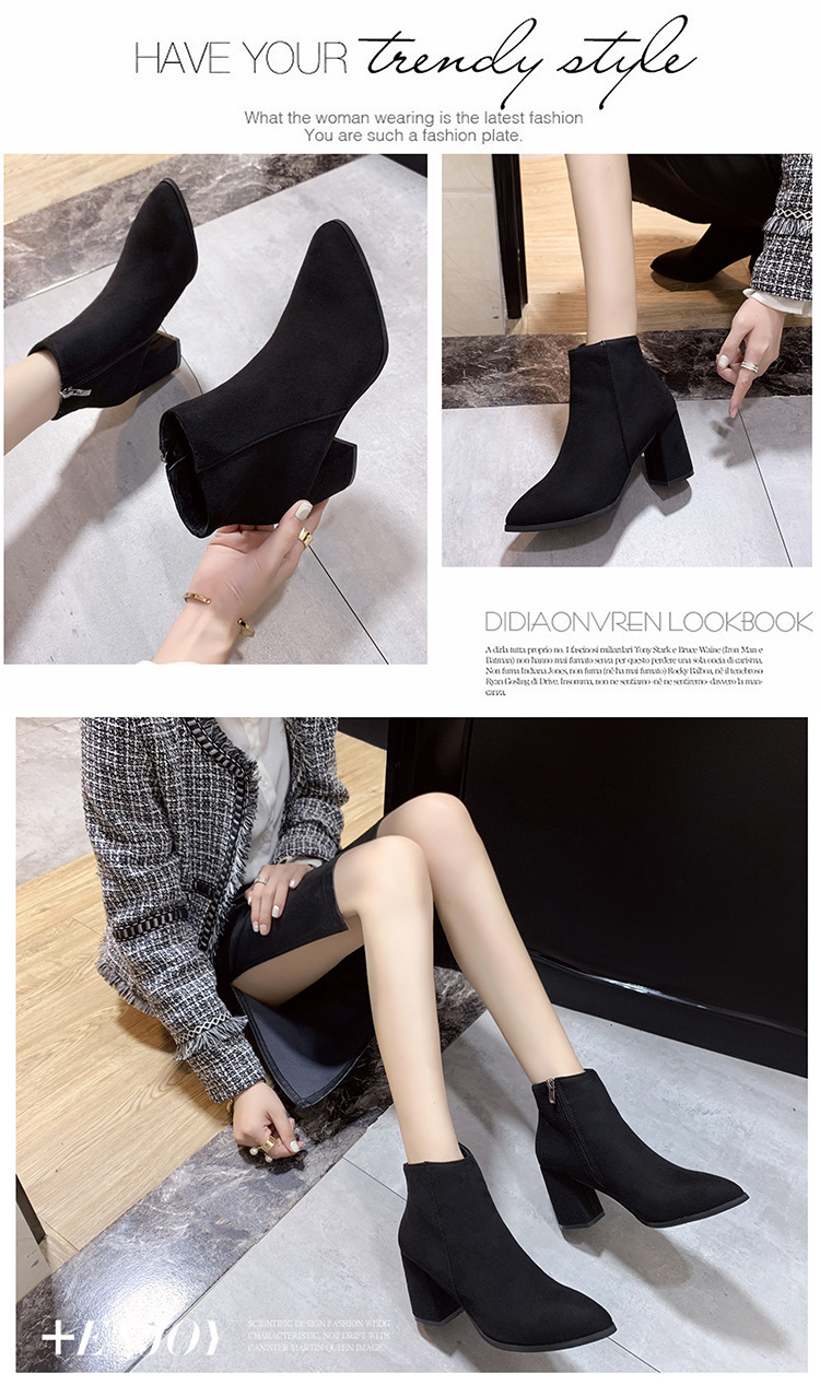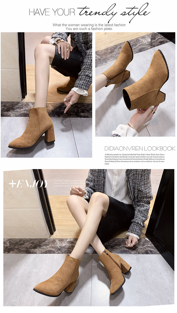 영국 스타일 하이힐 패션 쇼트 부츠 여성의 2023 가을 및 겨울 새로운 스웨이드 코어스 힐 미드 힐 패션 부츠 마틴스 부츠 싱글 부츠스토어 가기