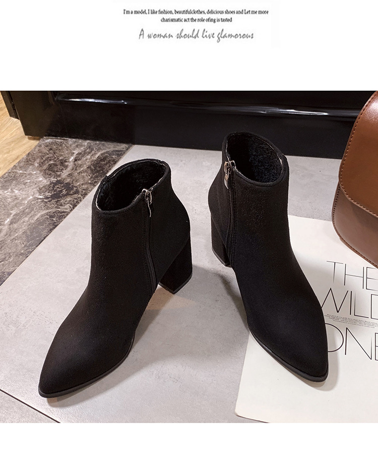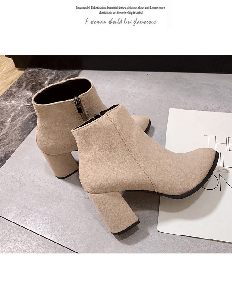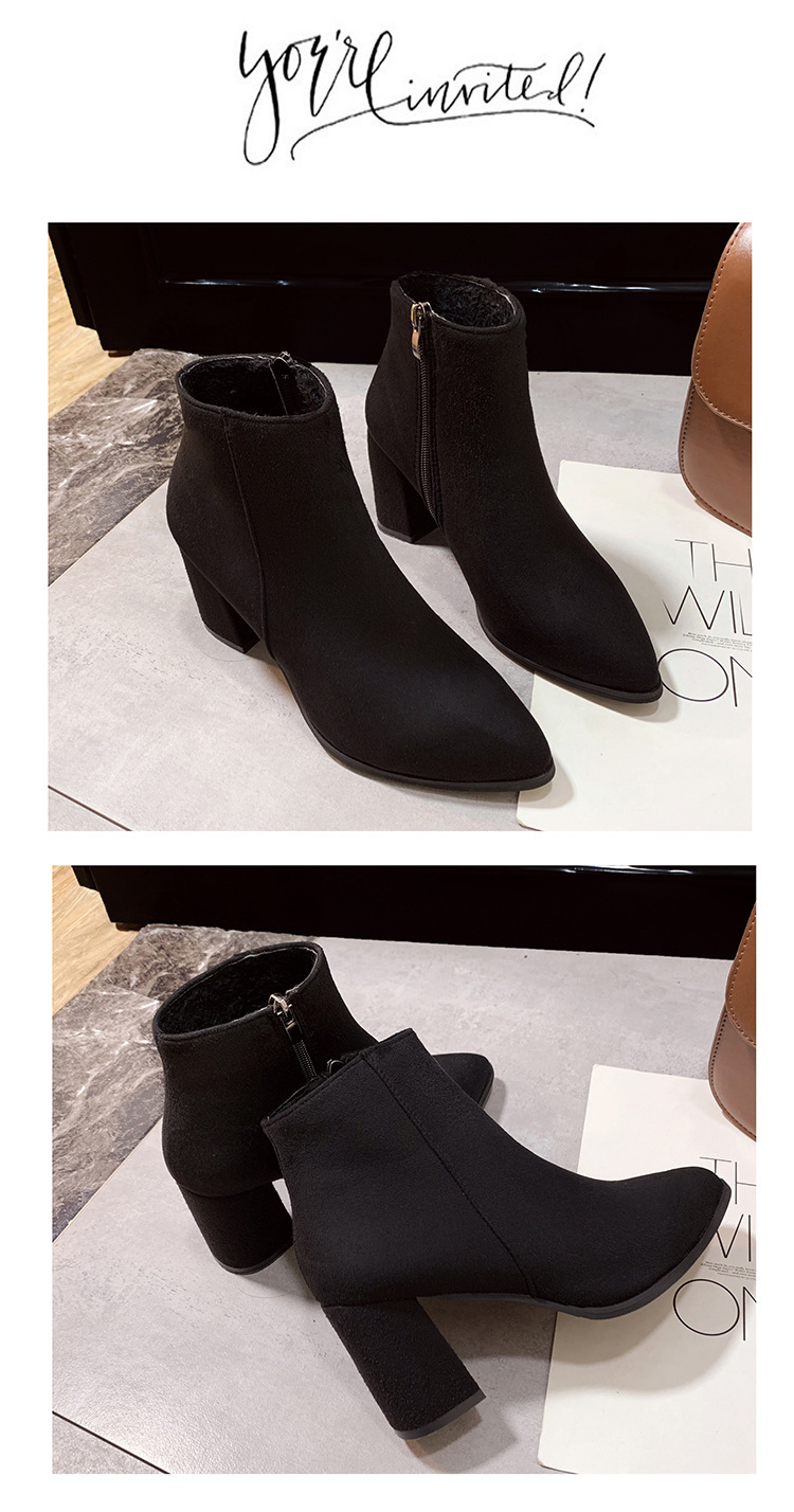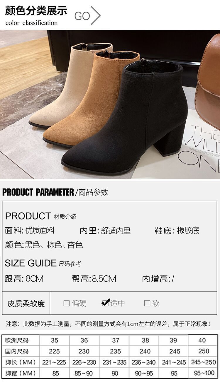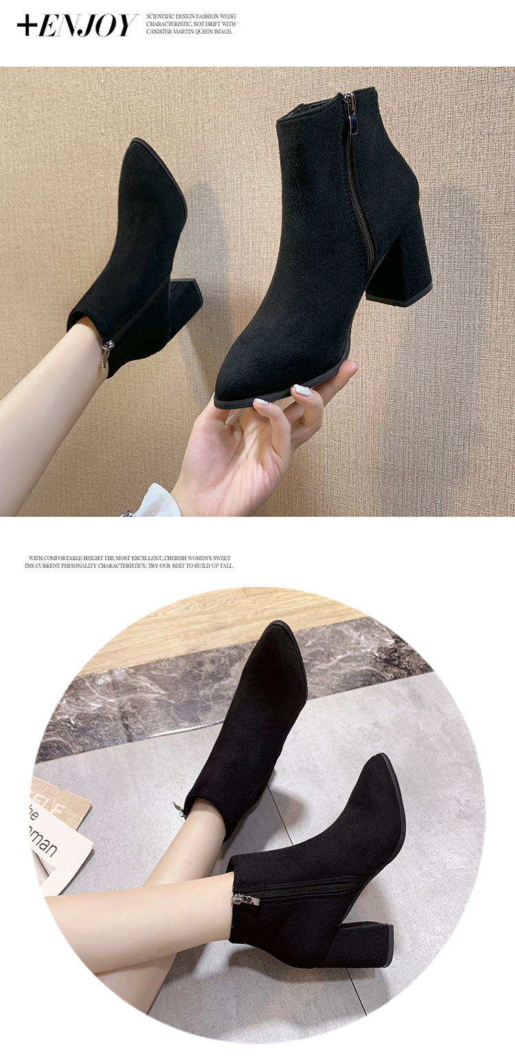 영국 스타일 하이힐 패션 쇼트 부츠 여성의 2023 가을 및 겨울 새로운 스웨이드 코어스 힐 미드 힐 패션 부츠 마틴스 부츠 싱글 부츠스토어 가기