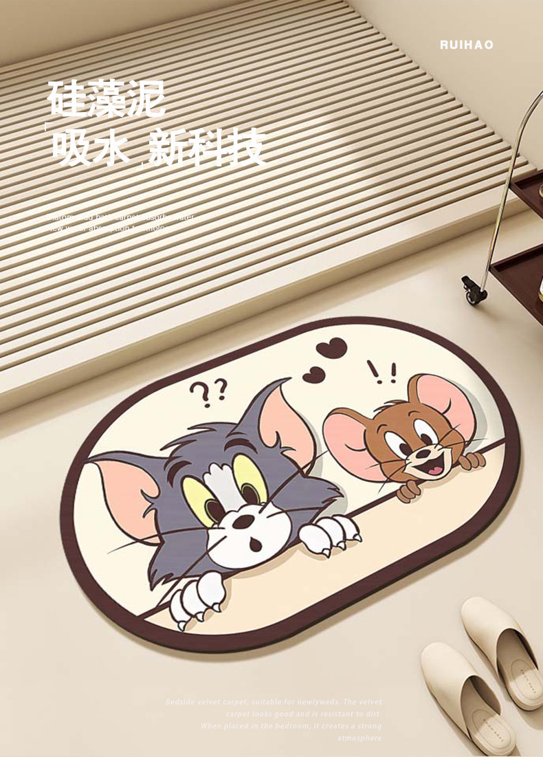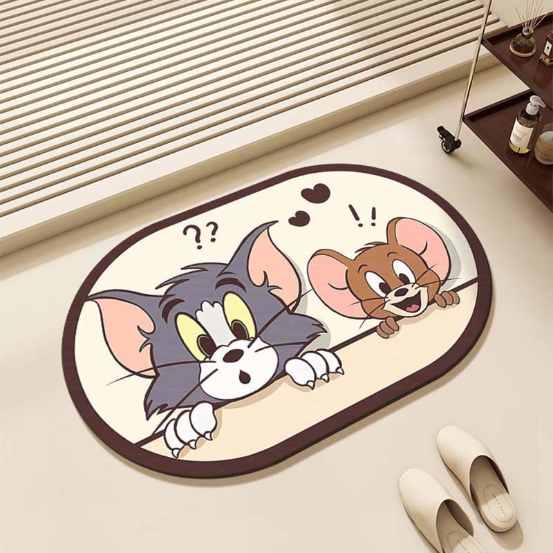 만화 만화 고양이와 마우스 바닥 매트 욕실 화장실 미끄럼 방지 흡수성 빠른 건조 발 매트 침실 편안한 마찰 방지 발 매트