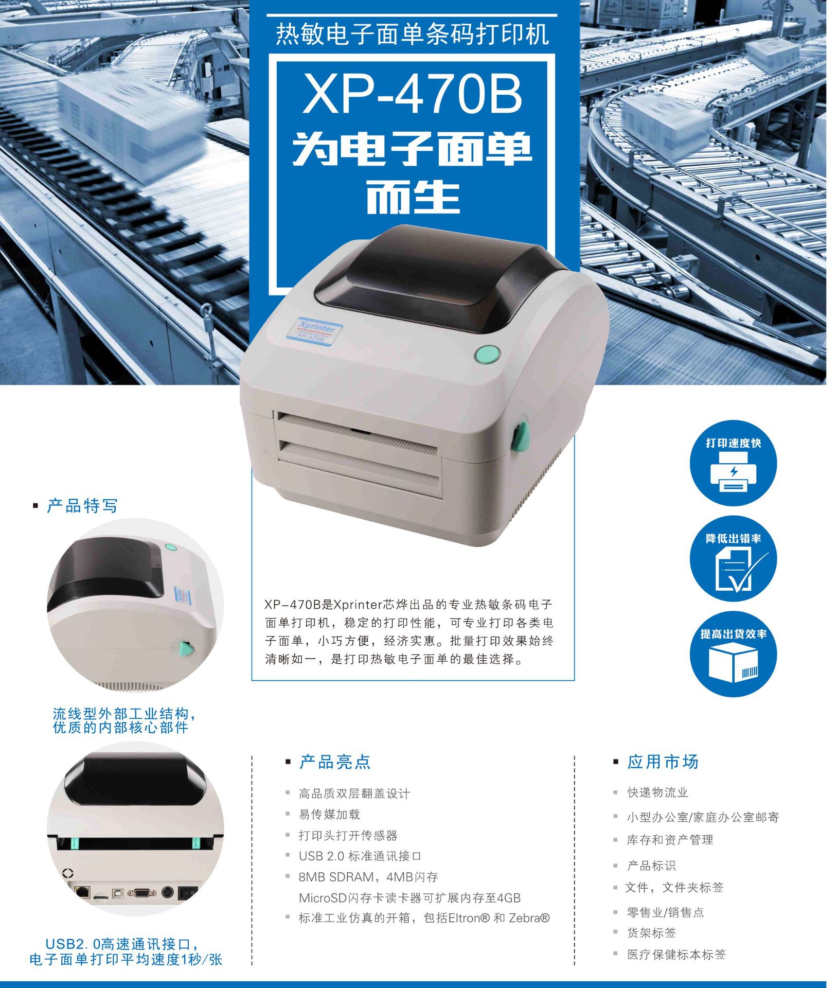 Xprinter热敏标签打印机XP-470B电子面单不干胶条码热敏打印机跨境电商快递