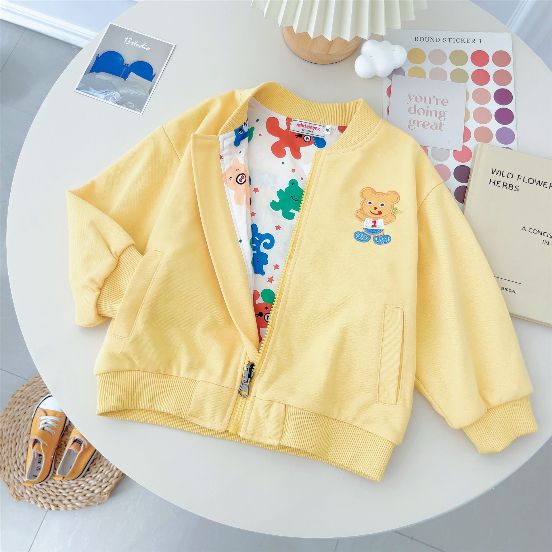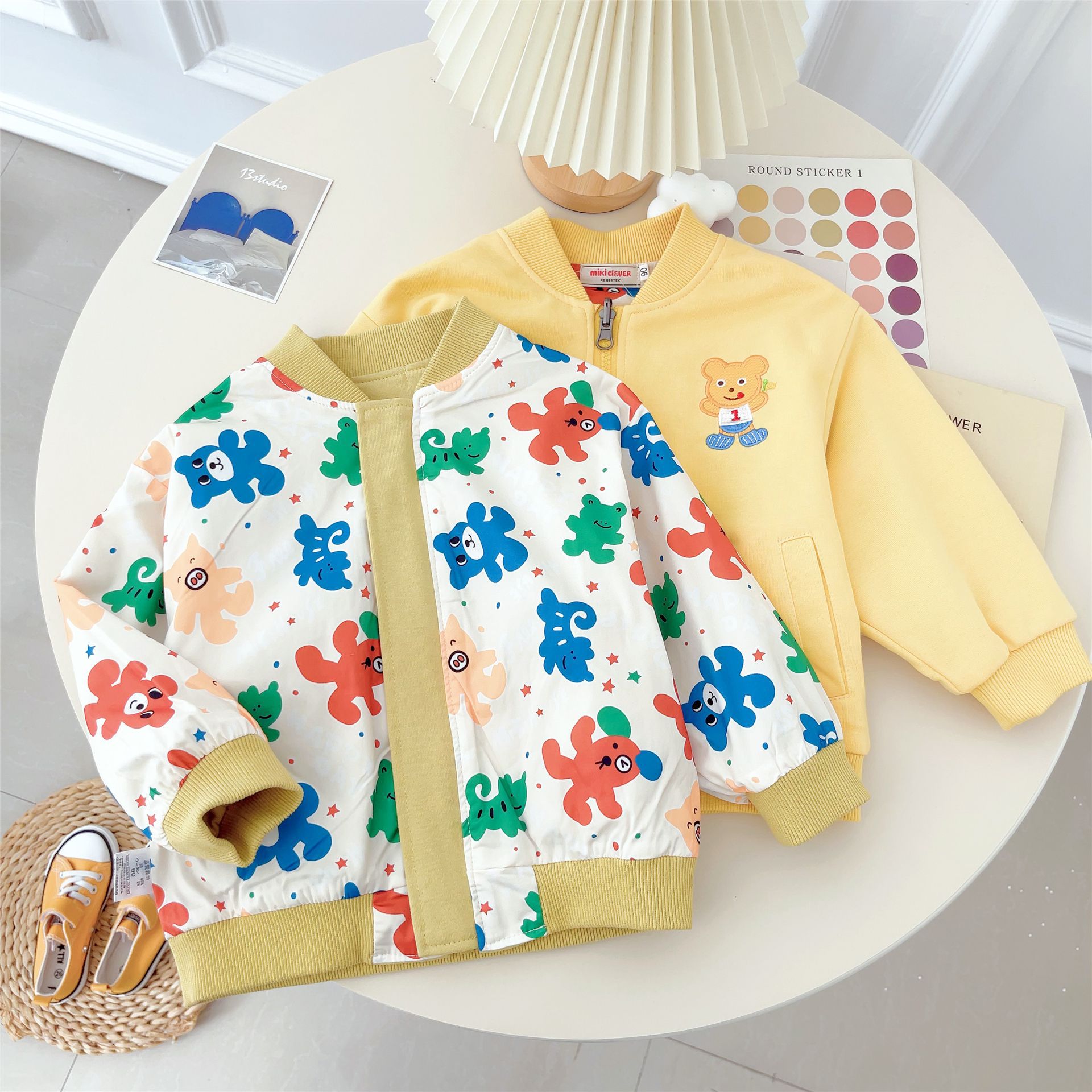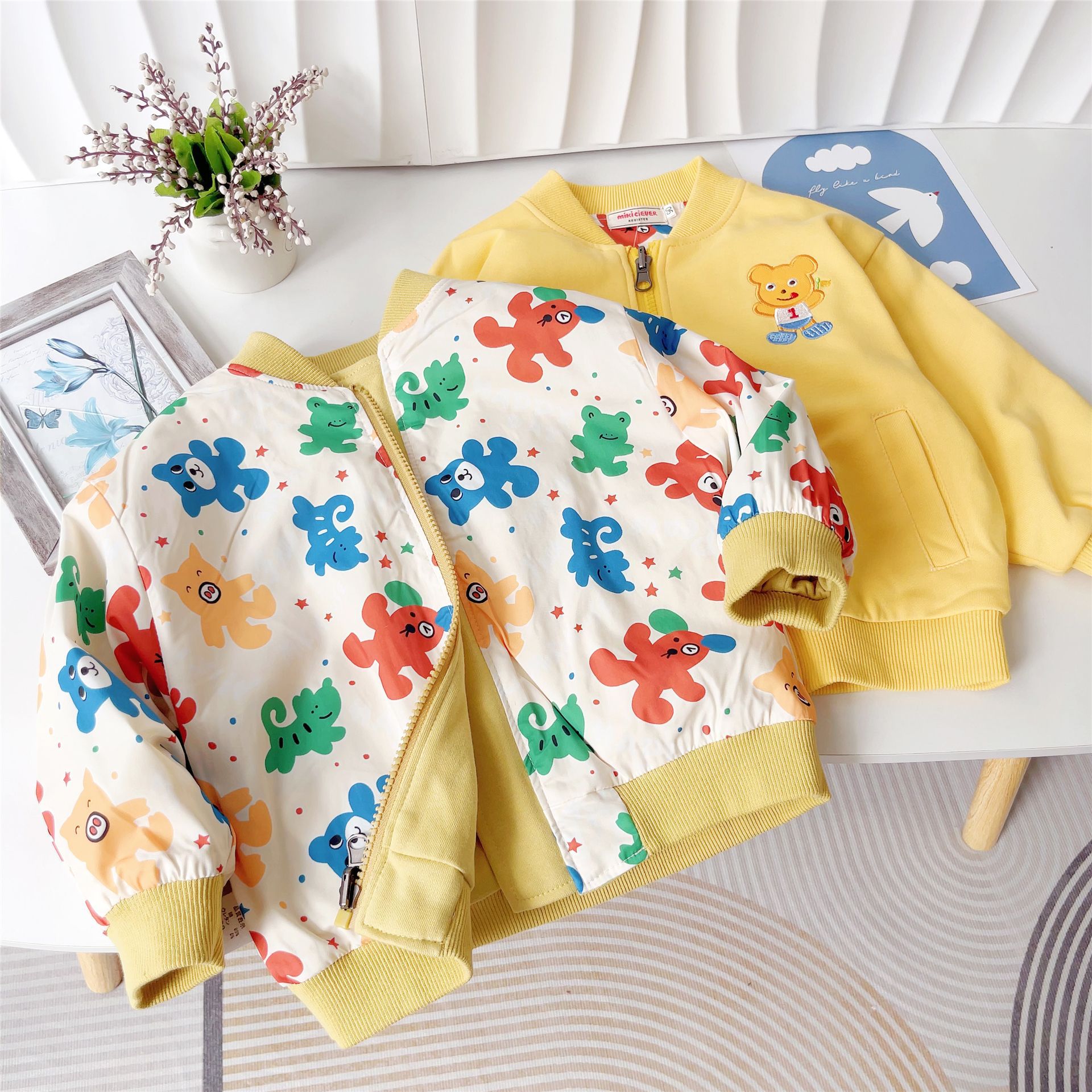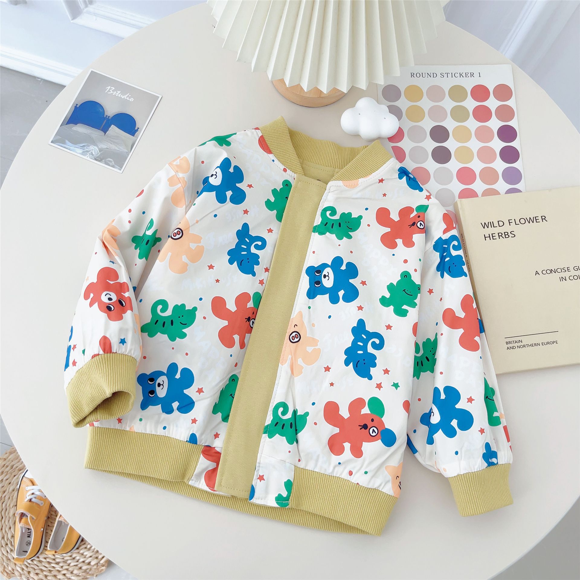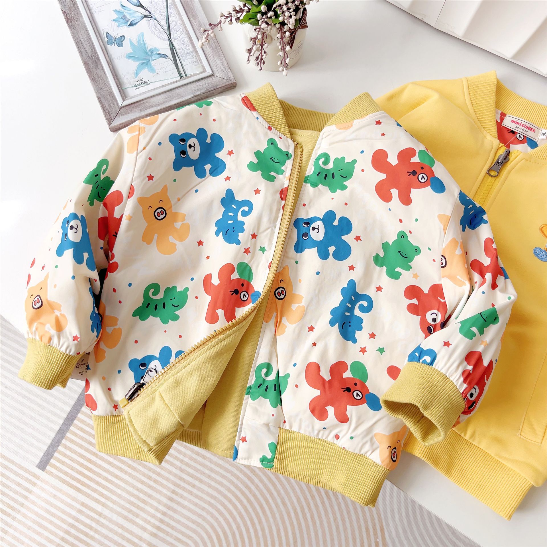 대외 무역 일본식 아동복 24 가을 새로운 스타일 만화 곰 앞면과 뒷면 양면 윈드 브레이커 소년 소녀 자켓 5067스토어 가기