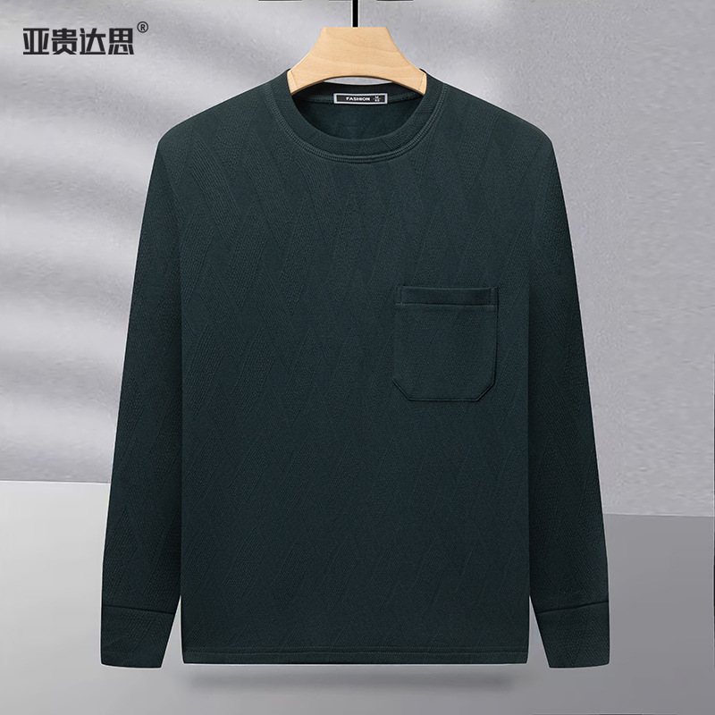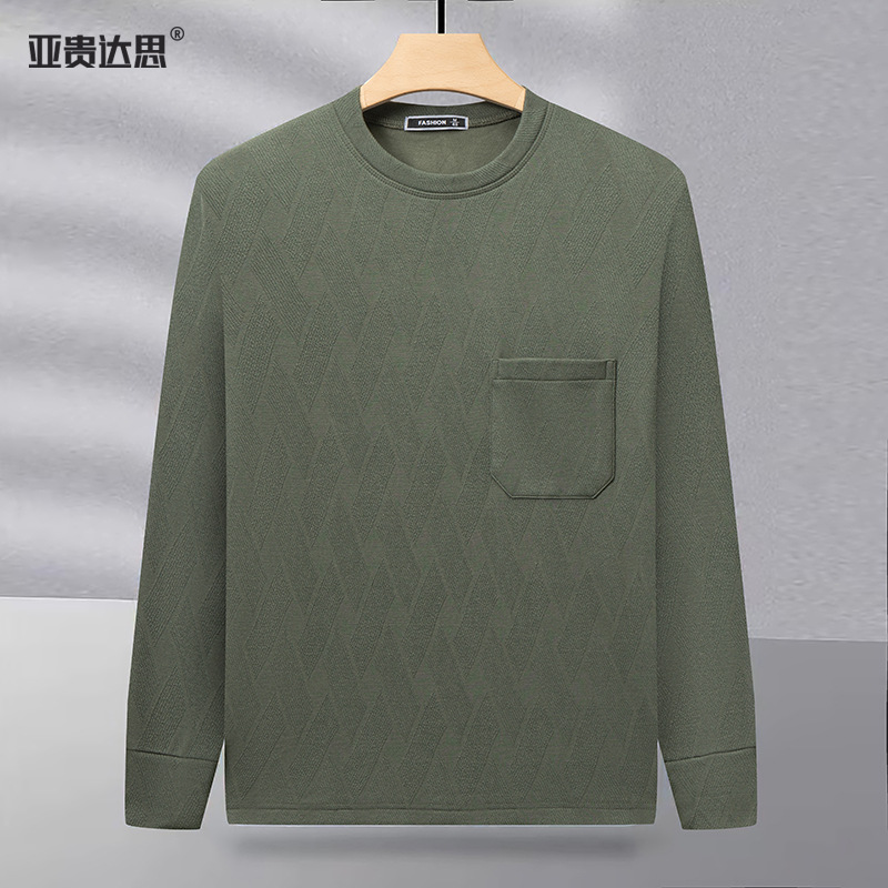 가을과 겨울 중년 남성 크루 넥 긴팔 티셔츠 드 벨벳 열 속옷 아빠의 할아버지베이스 셔츠 탑 포켓