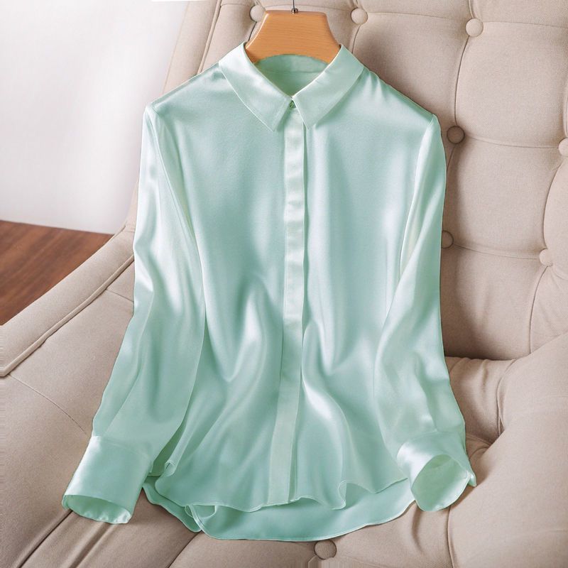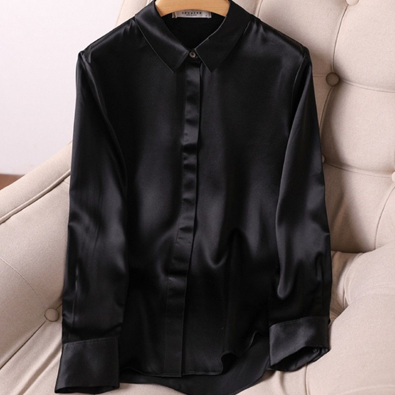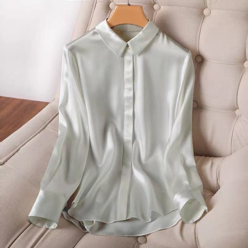 가벼운 고급 무거운 뽕나무 실크 셔츠 여성의 가을 새로운 단색 실크 셔츠 긴 소매 전문 탑 스택스토어 가기