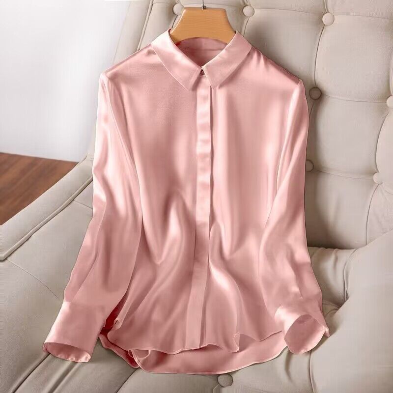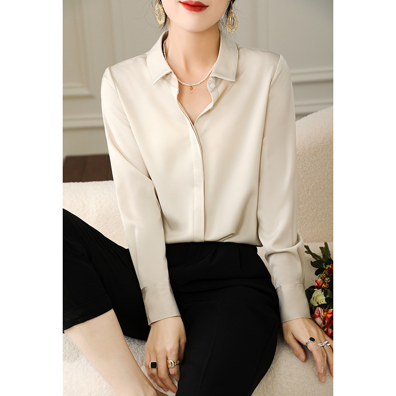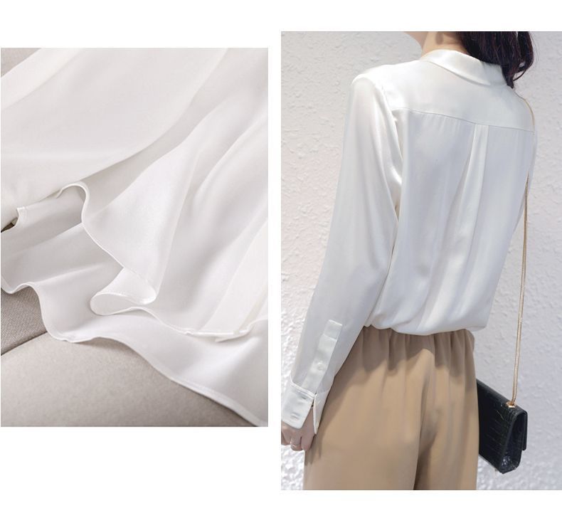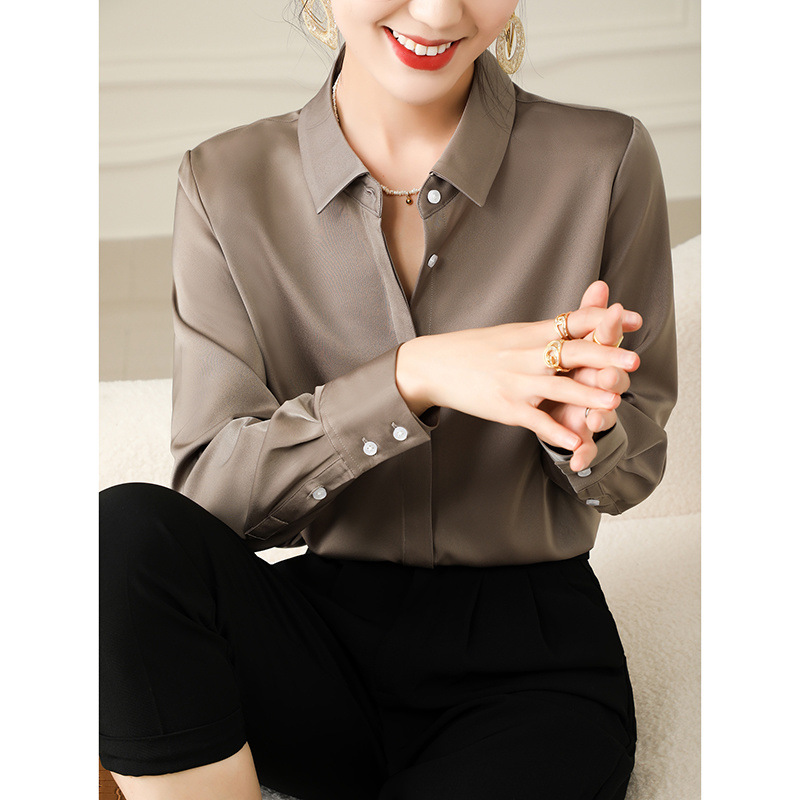 가벼운 고급 무거운 뽕나무 실크 셔츠 여성의 가을 새로운 단색 실크 셔츠 긴 소매 전문 탑 스택