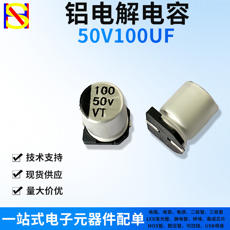 50V100UF 칩 알루미늄 전해 커패시터 원 스톱 전자 부품 단일 SMD 칩 커패시터