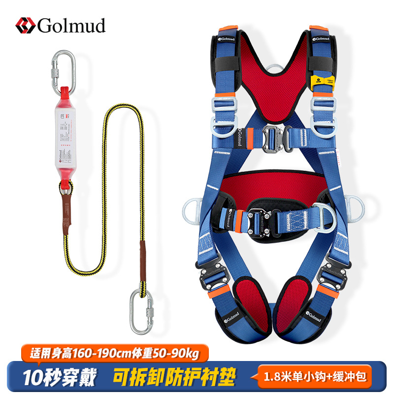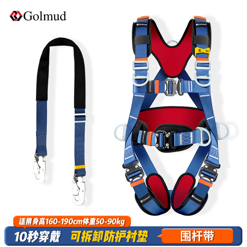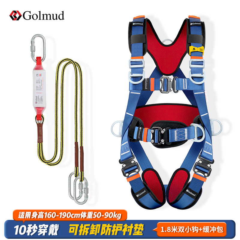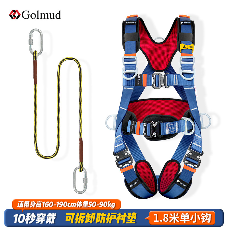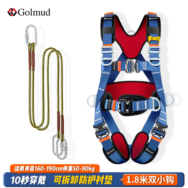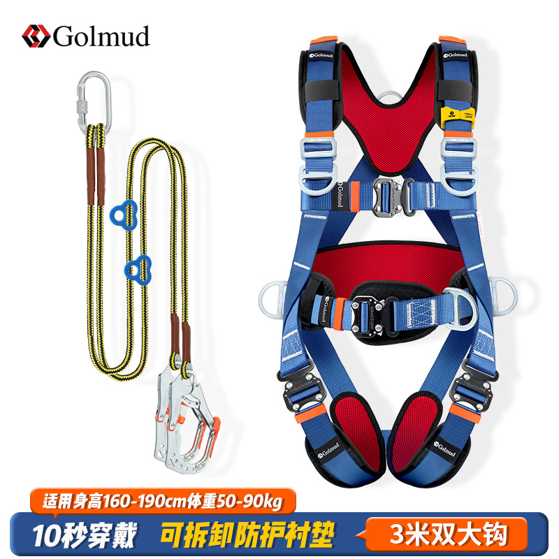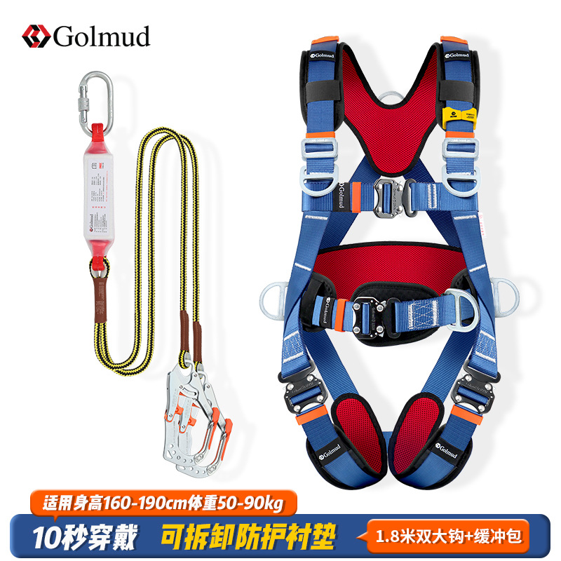Gorm 분리 가능한 전신 5 점 안전 벨트 GM5805 국가 표준 공중 작업 이중 후크 안전 로프 세트스토어 가기