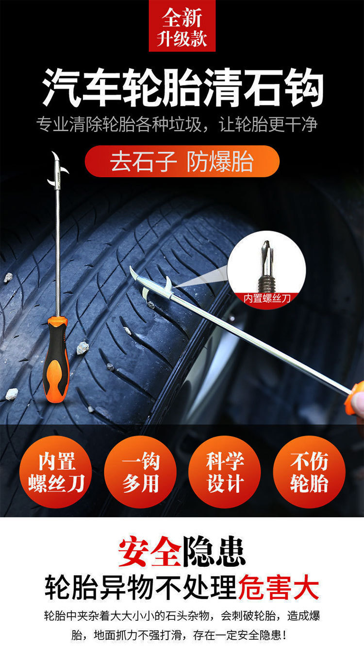 자동차 타이어 돌 청소 후크 돌 청소 도구 돌 스크류 드라이버 타이어 후크 돌 청소 후크 긁는 바퀴스토어 가기