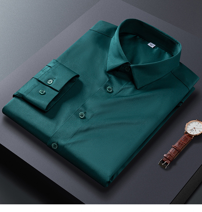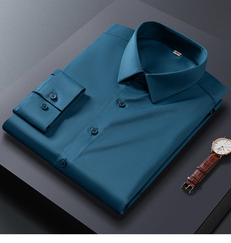 원활한 스트레치 얇은 반팔 셔츠 남성 비즈니스 캐주얼 원피스 다림질 방지 중년 및 노인을위한 올 매치 수분 흡수 셔츠