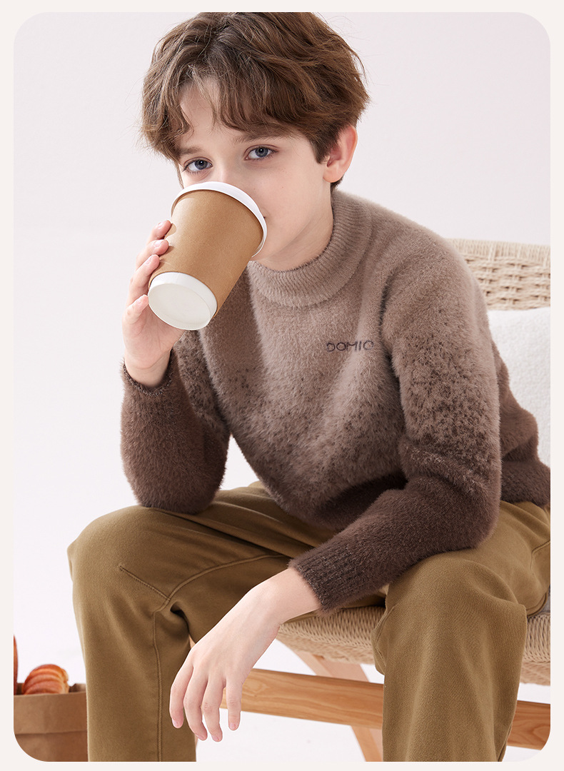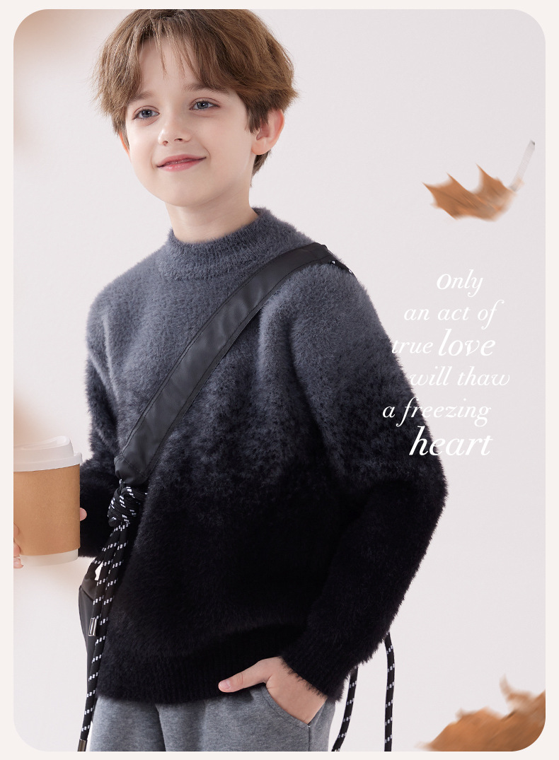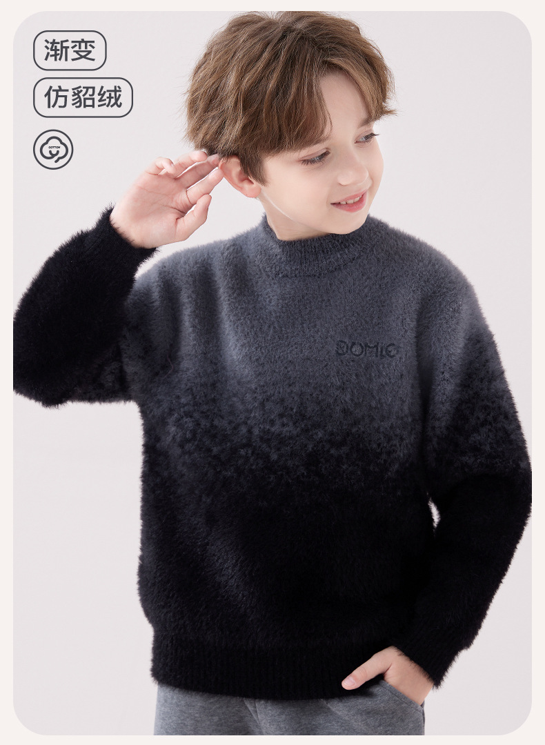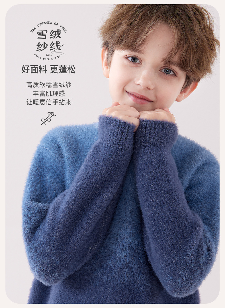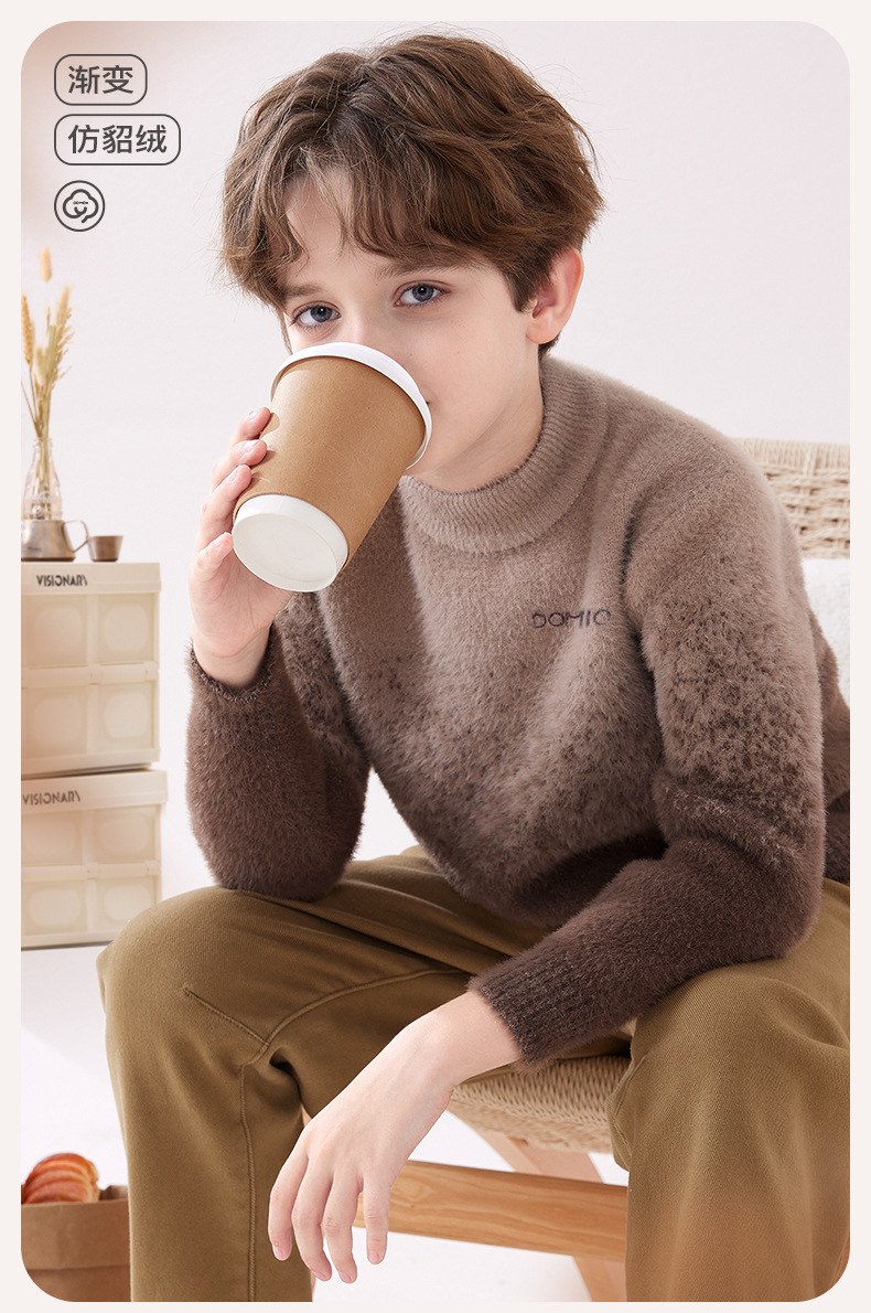 소년 스웨터 어린이 가을 및 겨울 새로운 모방 밍크 벨벳 니트베이스 셔츠 큰 어린이 두꺼운 톱 소년 서양식 아동복