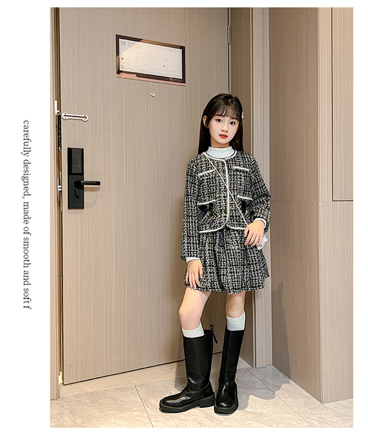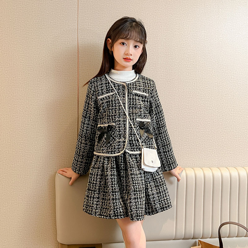 새끼들 2024 가을 새로운 작은 향기로운 스타일 세트 서양식 여학생 활 치마 투피스 대외 무역