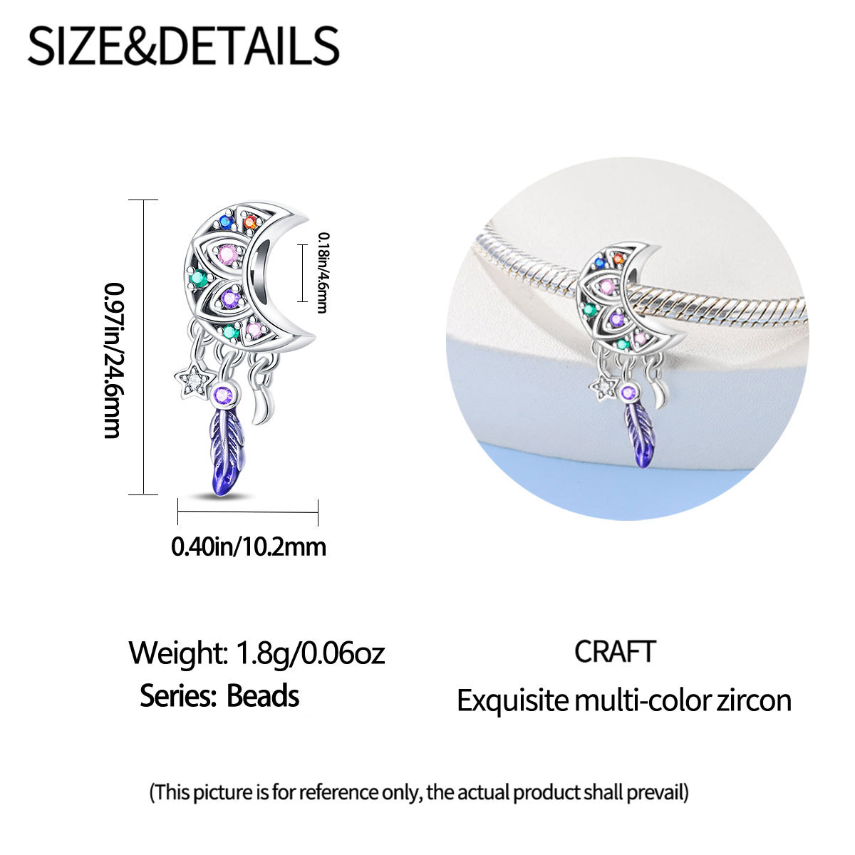 Panjia 스타일 원래 꿈 포수 달 비즈 펜던트 925 실버 도금 DIY 보석 액세서리 팔찌 국경 새