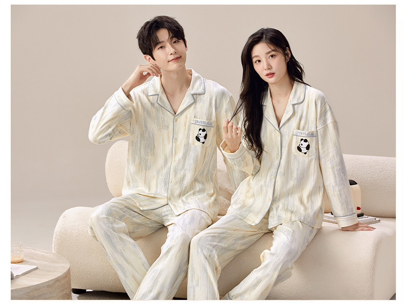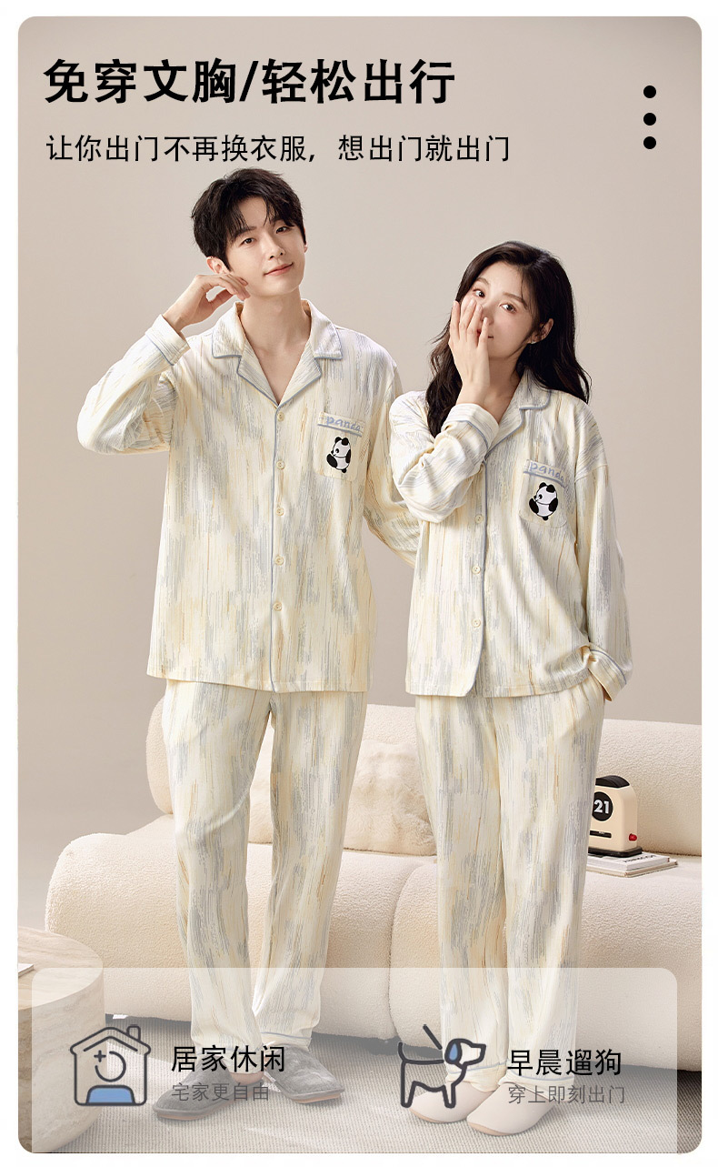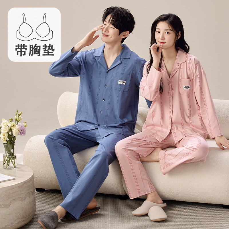 커플 잠옷 옷깃 카디건 긴소매 코튼 가슴패드와 한국 스타일 여자 플러스 사이즈 남자 가을 겨울 홈 의류 세트스토어 가기