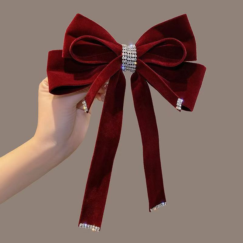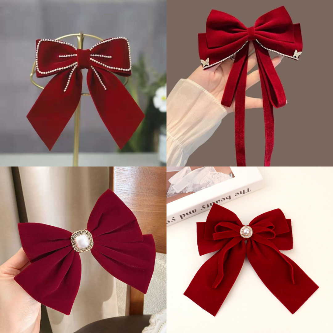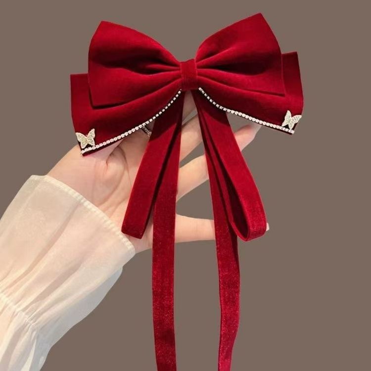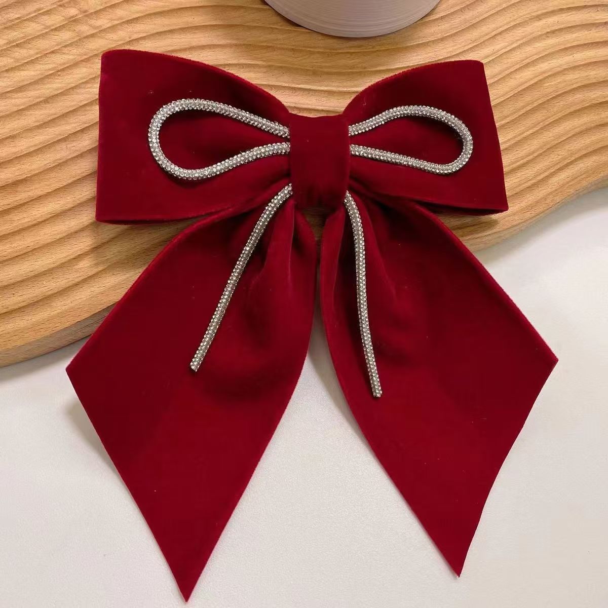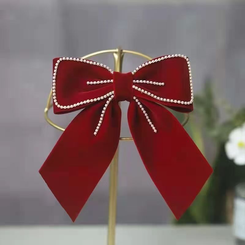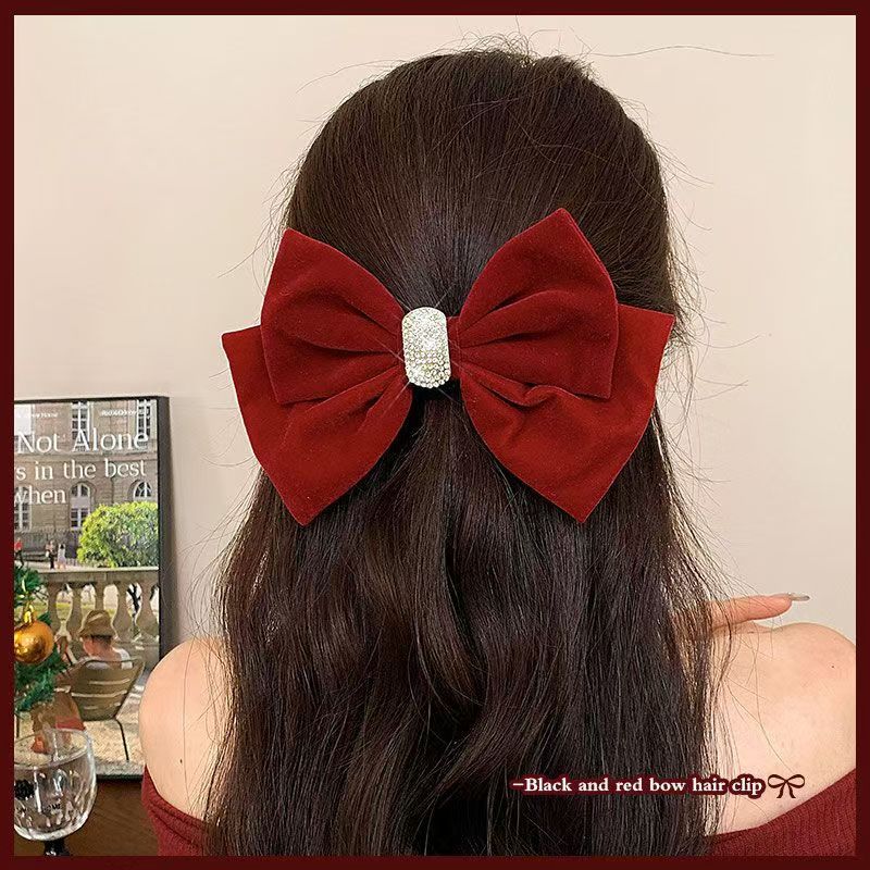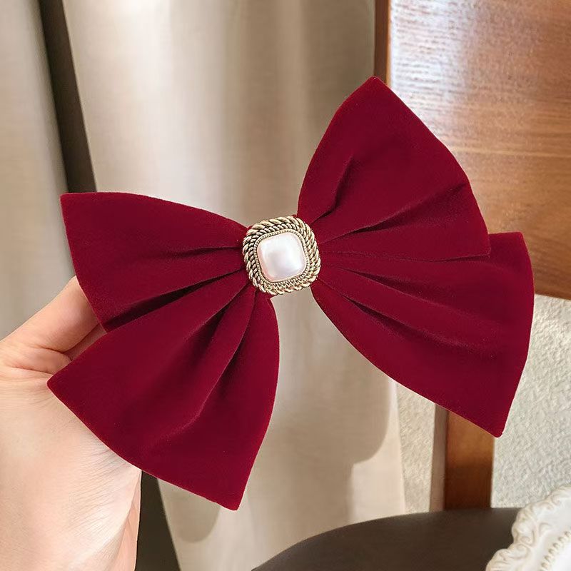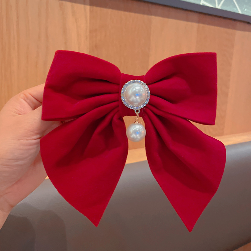가을과 겨울 빨간 벨벳 활 머리핀 여성의 2023 새로운 하이 엔드 봄 클립 등 머리 크리스마스 헤어 액세서리스토어 가기