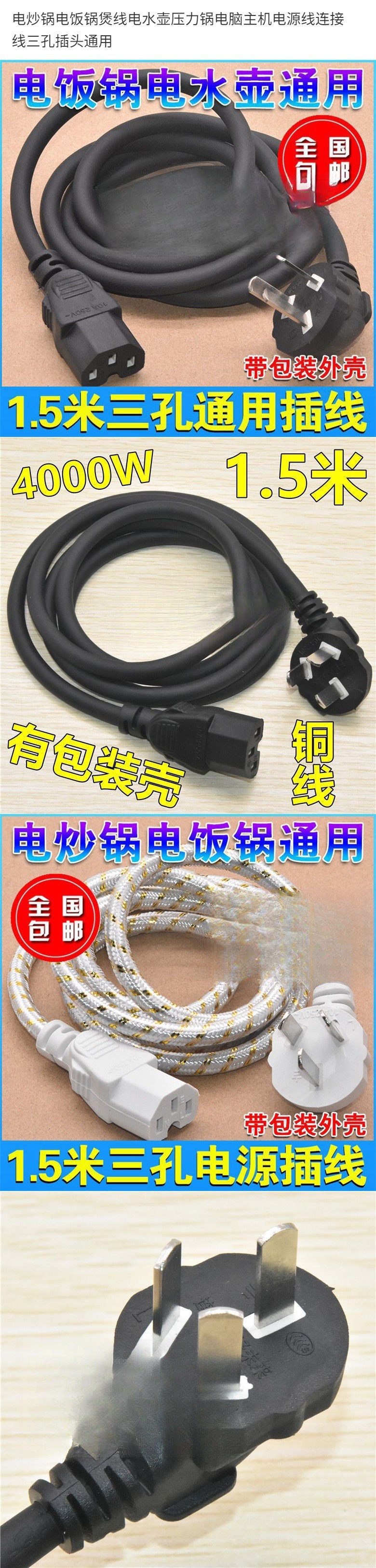 전기 프라이팬 전기 밥솥 라인 전기 주전자 압력솥 컴퓨터 호스트 전원 코드 케이블 3 홀 플러그 유니버설