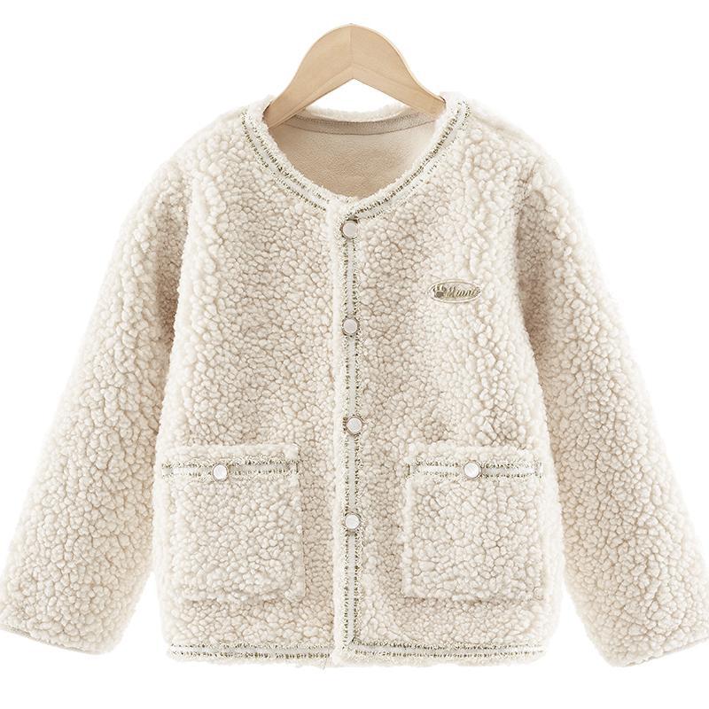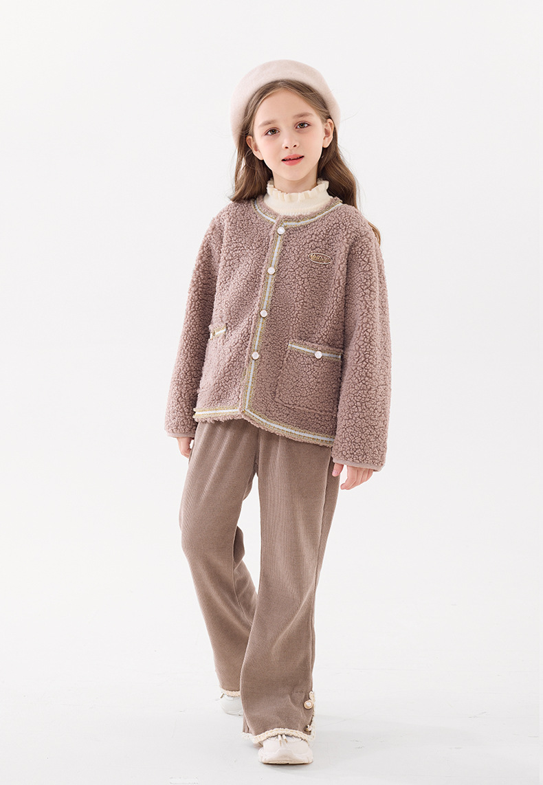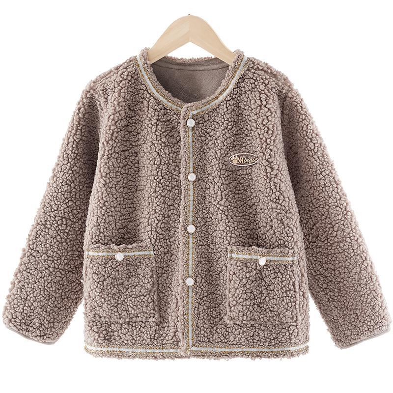 소녀 코트 봄과 가을 어린이 샤넬 스타일 카디건 2024 새로운 큰 어린이 양털 세련된 최고 가을과 겨울스토어 가기