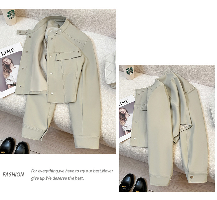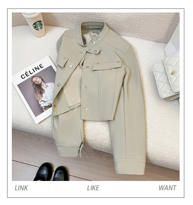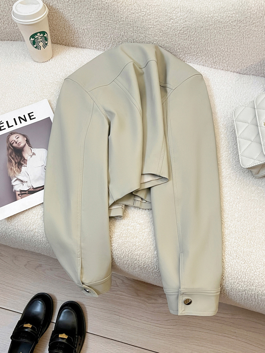 라이스 그레이 슈퍼 잘 생긴 가죽 자켓 여성의 2024 가을 새로운 우아한 유행 짧은 느슨한 오토바이 가죽 자켓스토어 가기