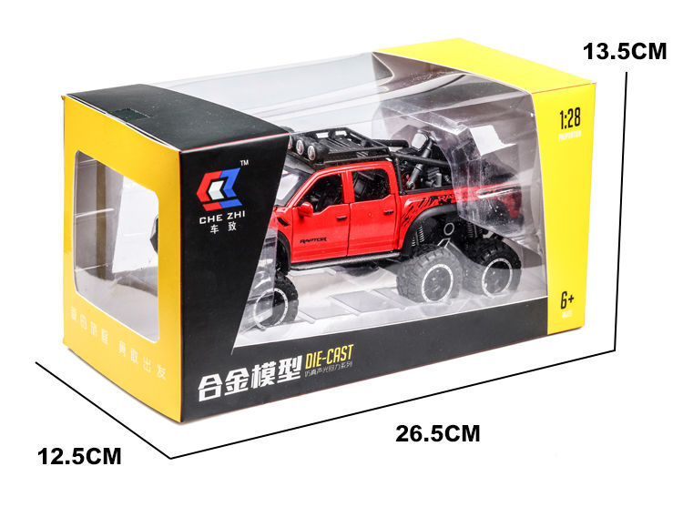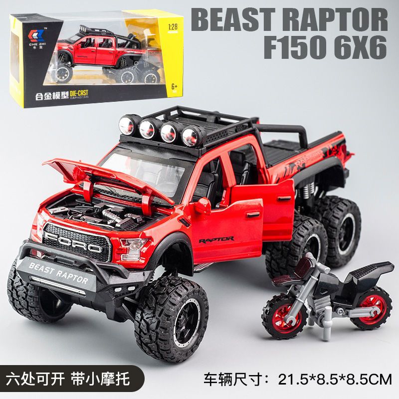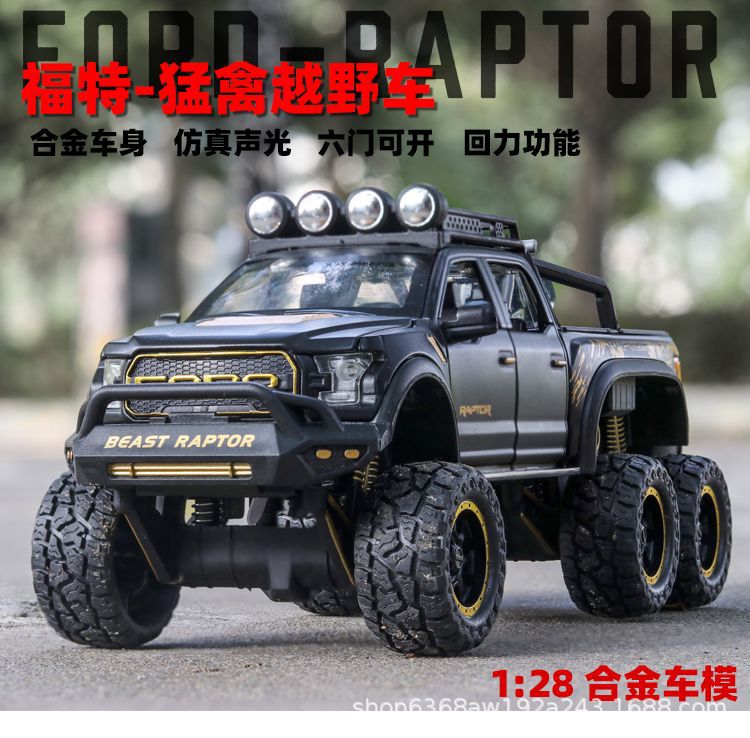 합금 장난감 자동차 1:28 모델 포드 F-150 랩터 픽업 Acousto 및 라이트 파워 6 오픈 도어
