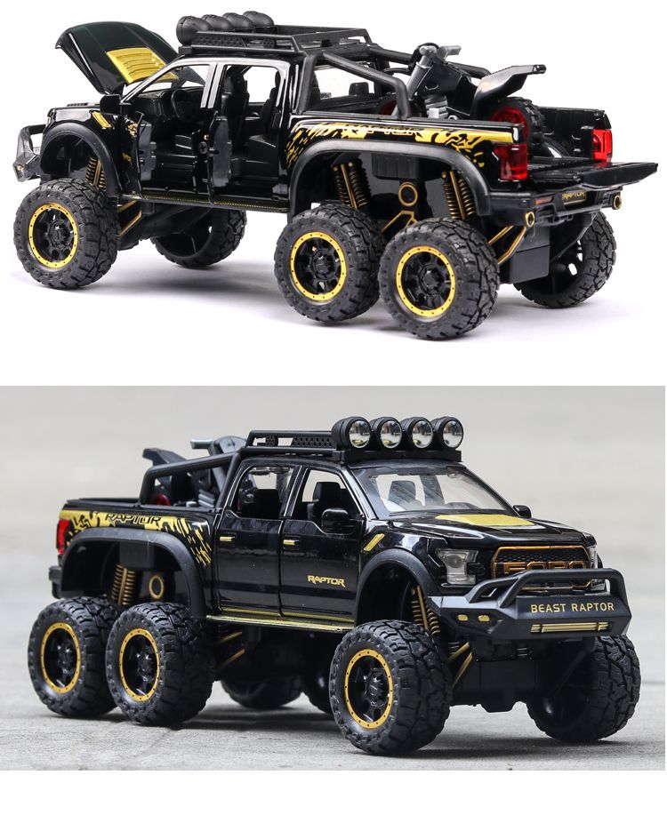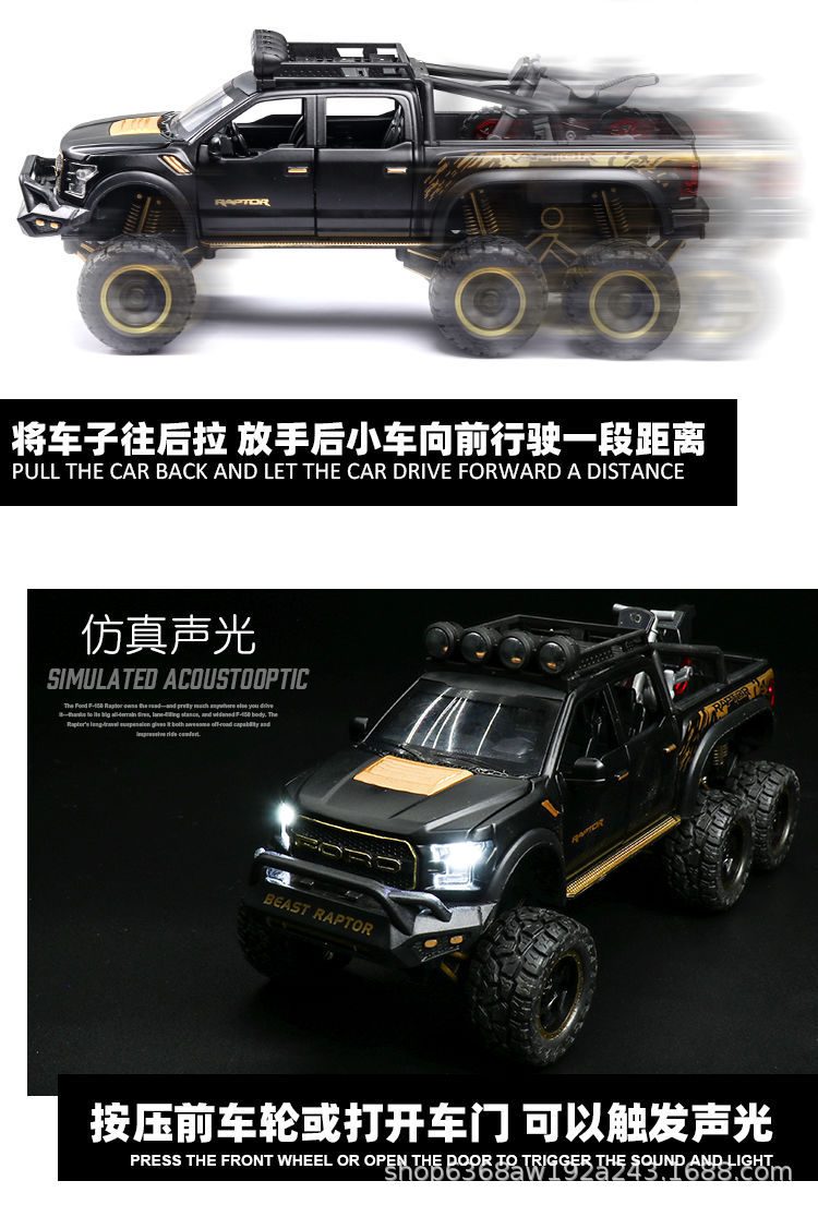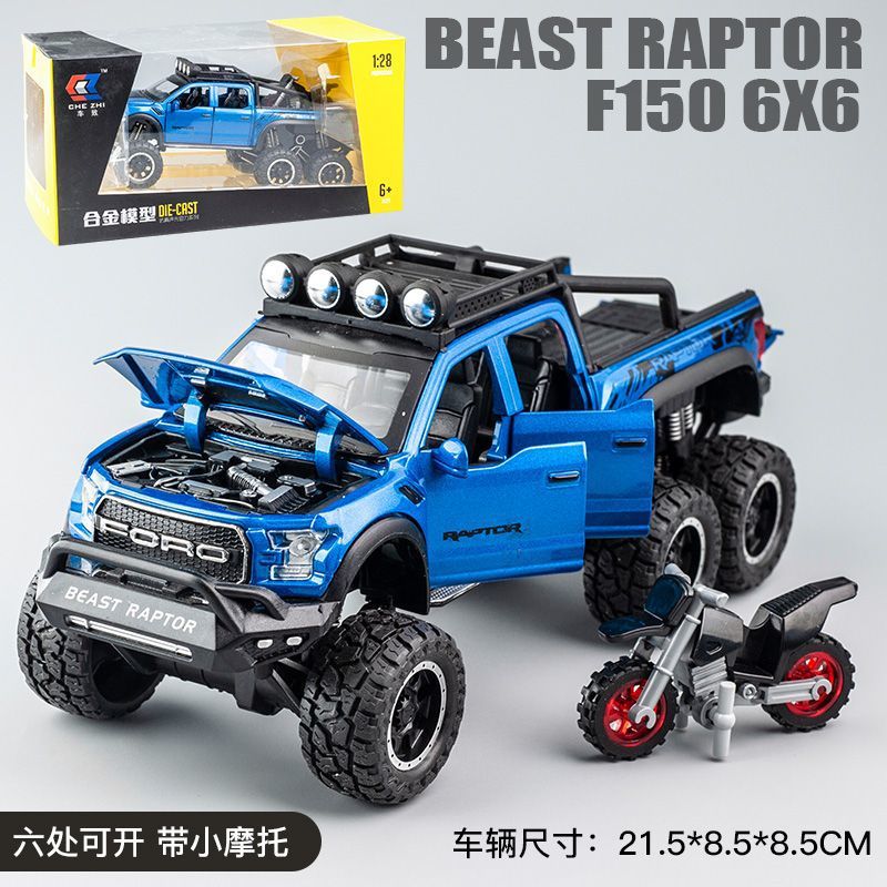합금 장난감 자동차 1:28 모델 포드 F-150 랩터 픽업 Acousto 및 라이트 파워 6 오픈 도어스토어 가기