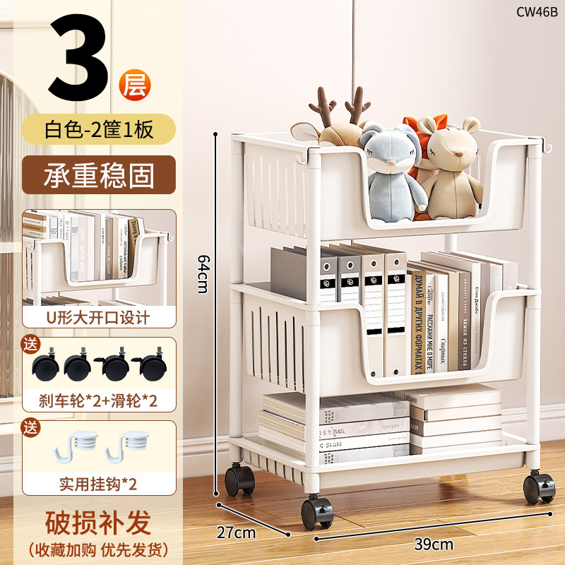 • 바퀴가 달린 흰색 3단 [깊은 바구니 스타일]