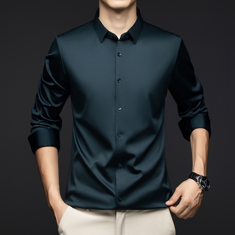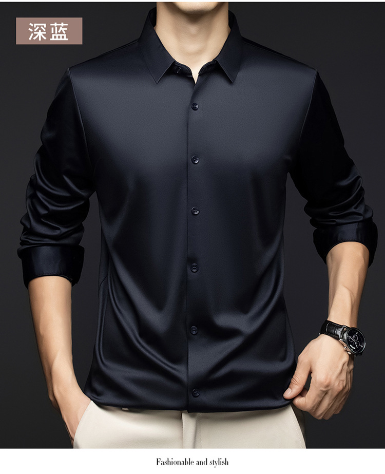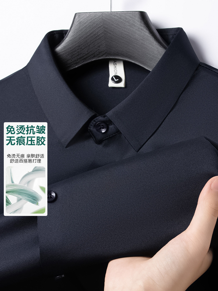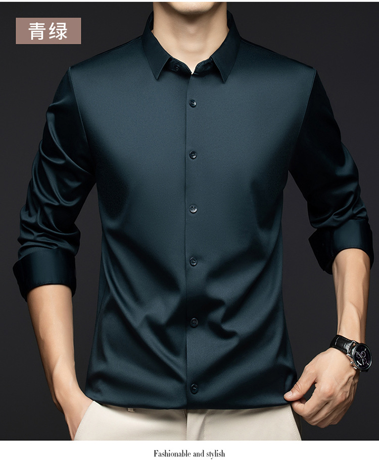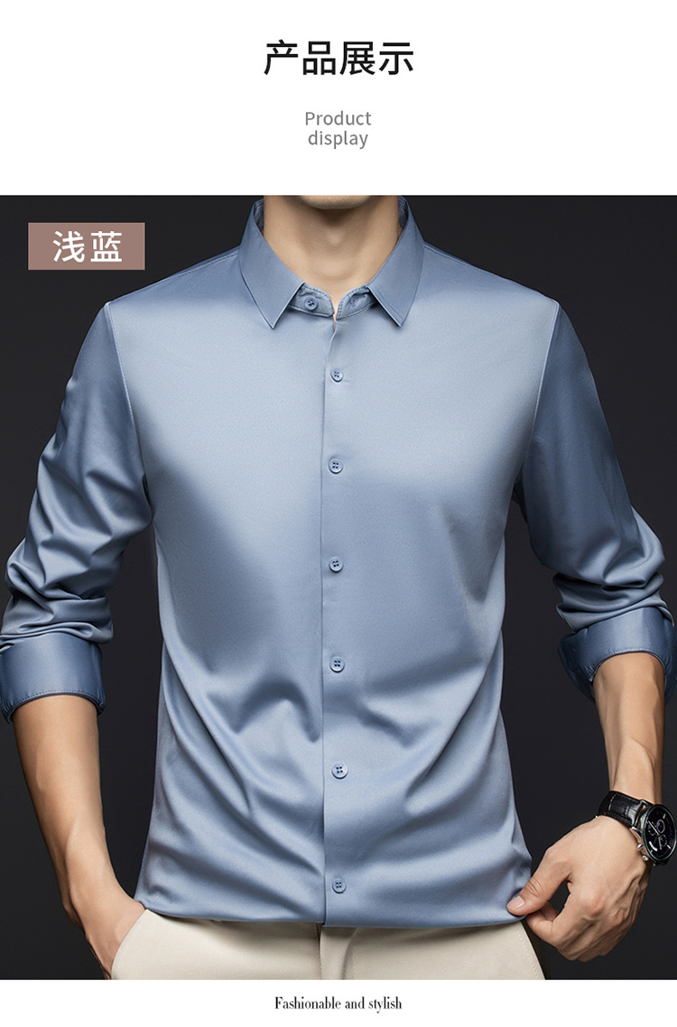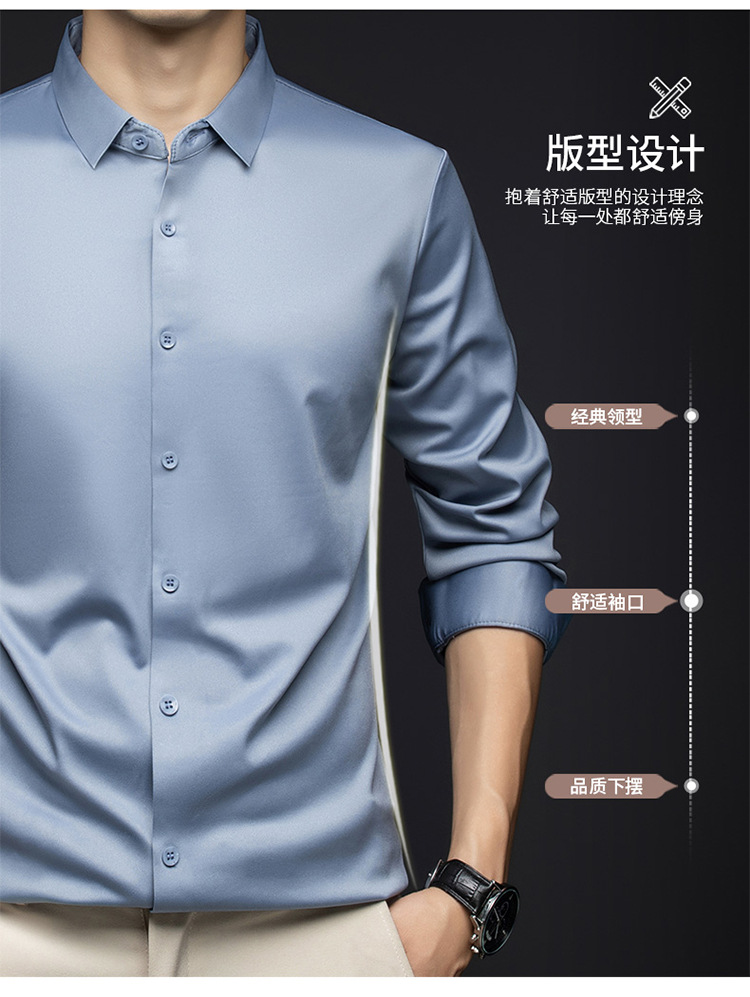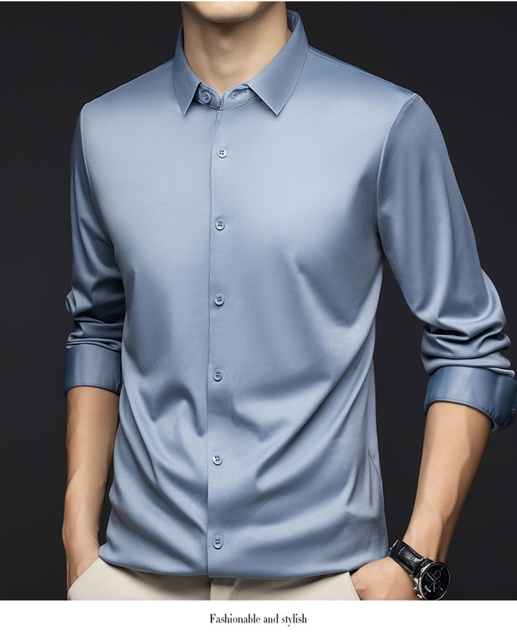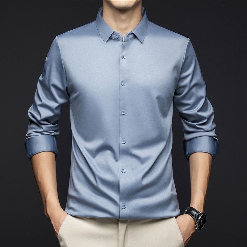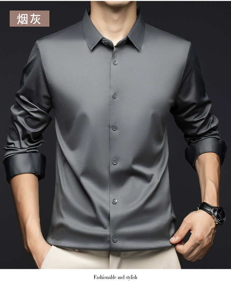 남성 셔츠 고급 원활한 주름 방지 비 다림질 가을 비즈니스 통근 패션 단색 긴 소매 셔츠 남성 도매스토어 가기