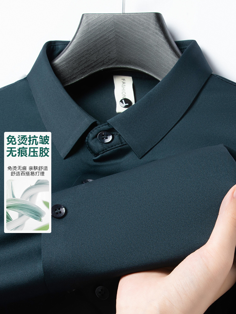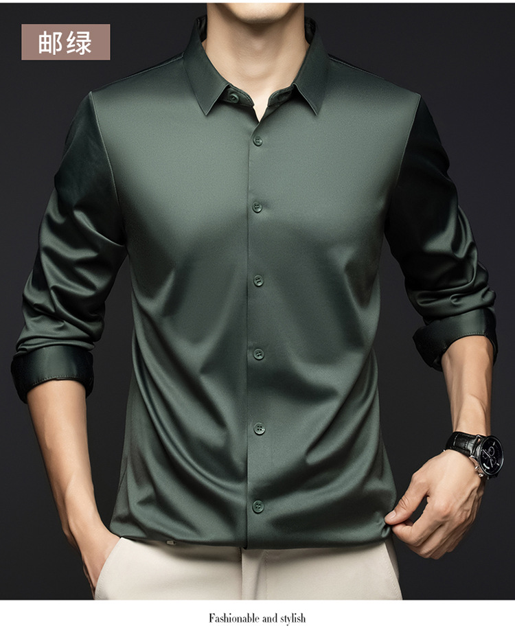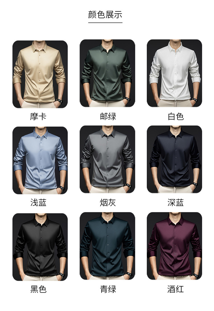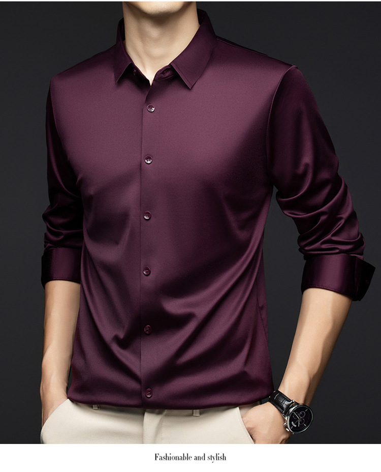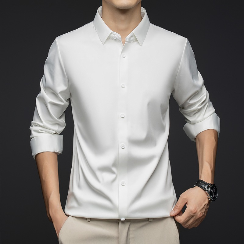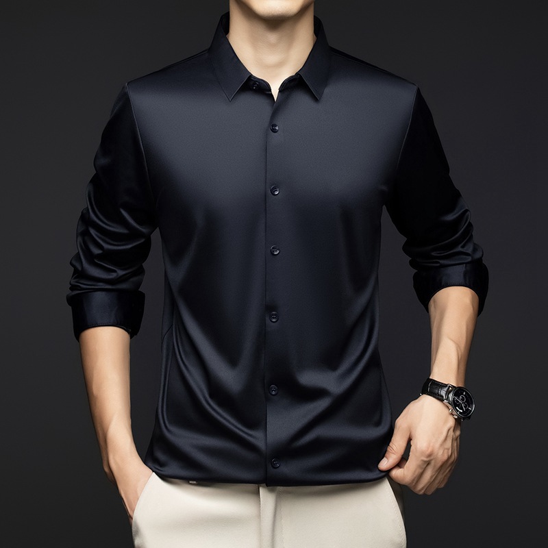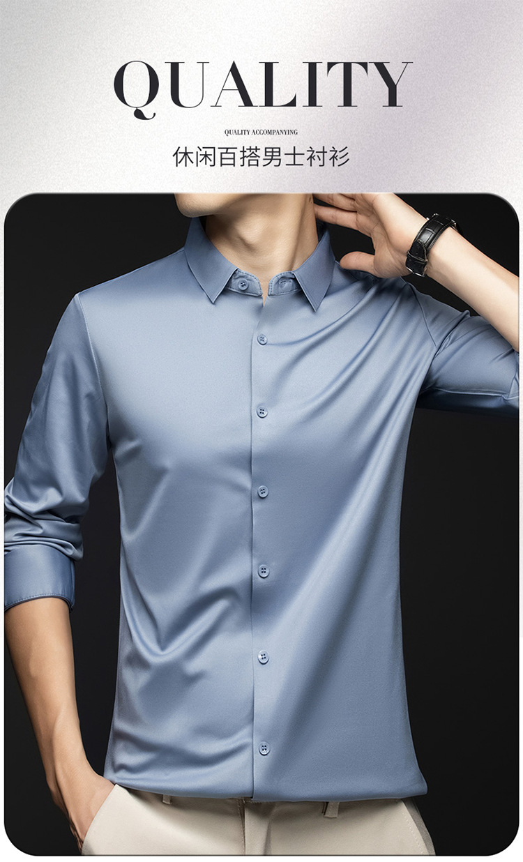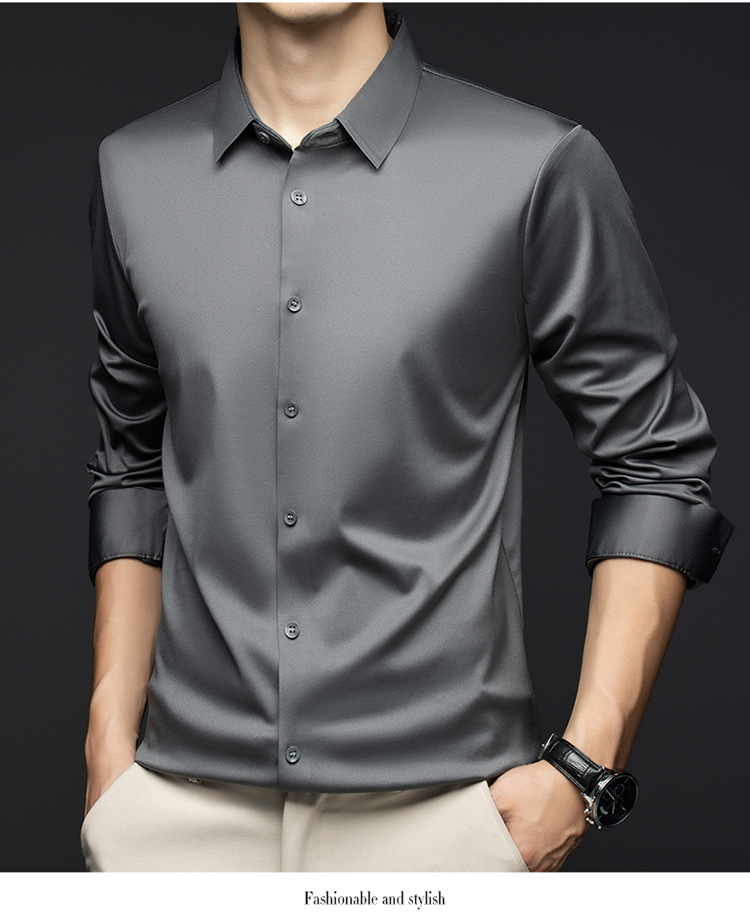 남성 셔츠 고급 원활한 주름 방지 비 다림질 가을 비즈니스 통근 패션 단색 긴 소매 셔츠 남성 도매스토어 가기