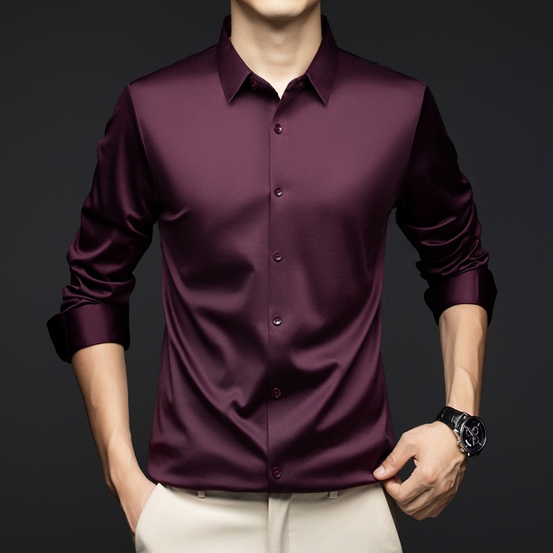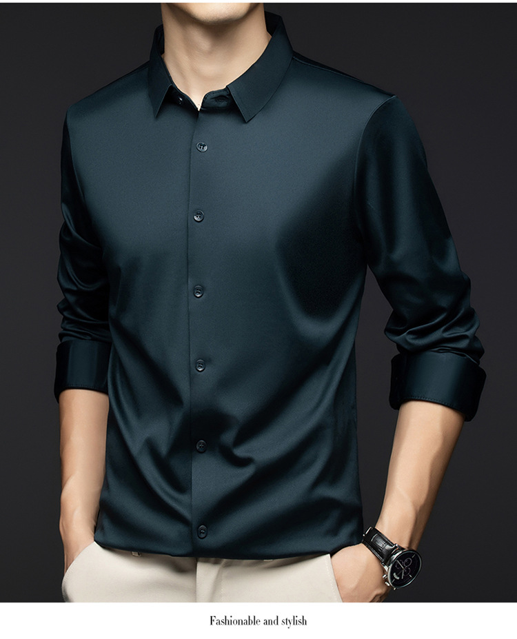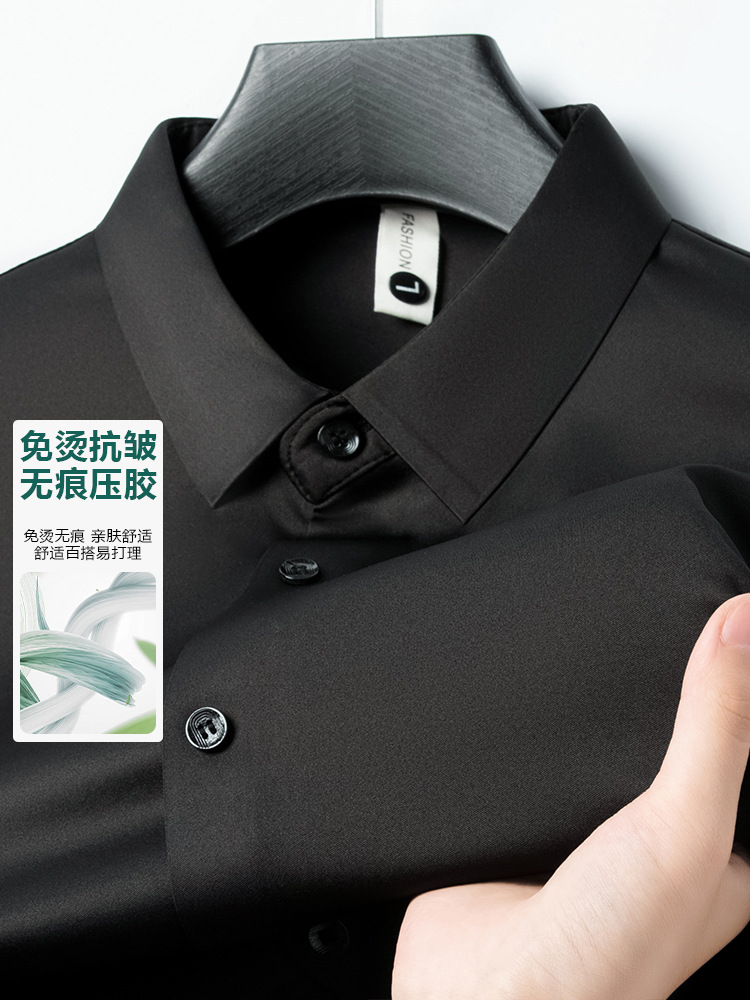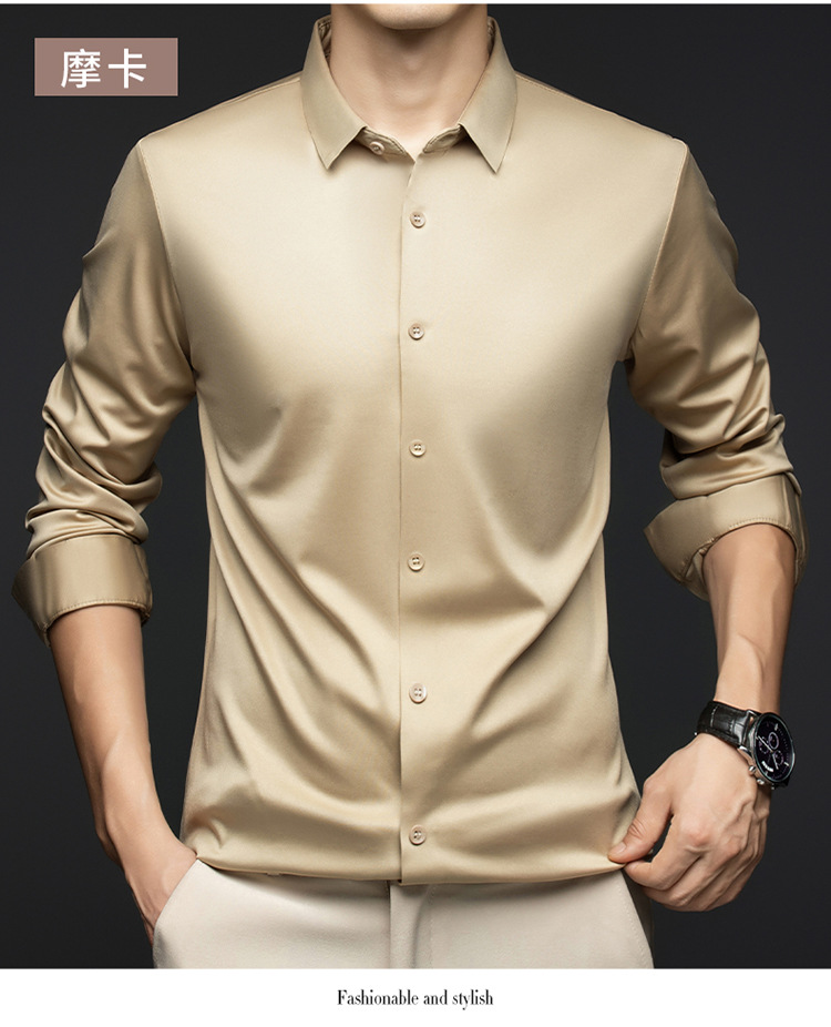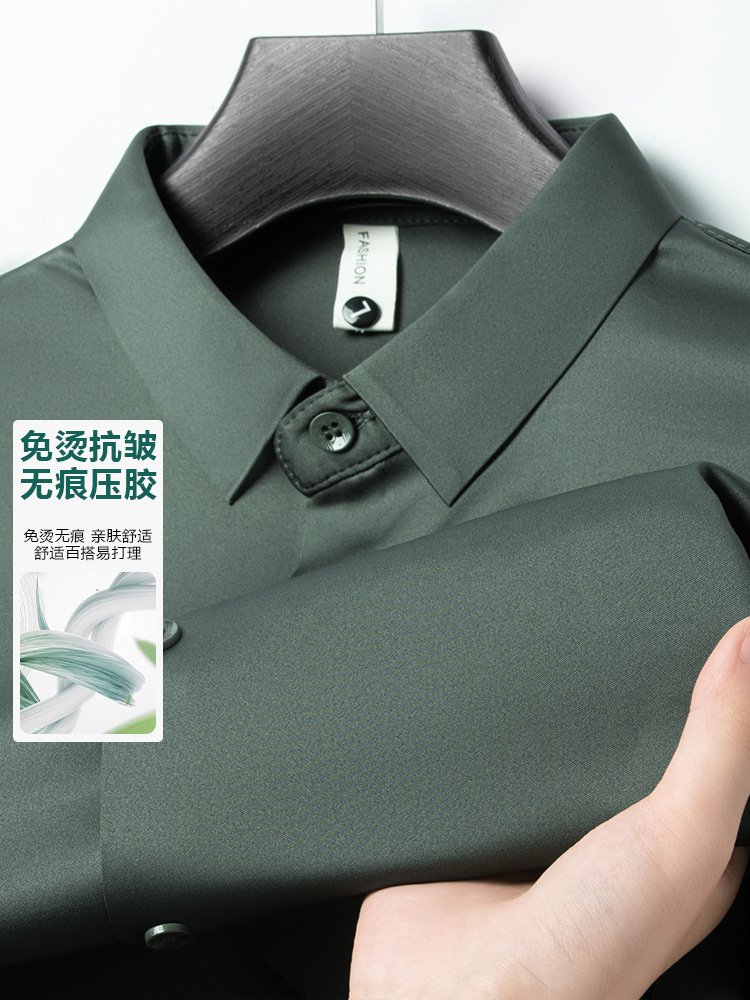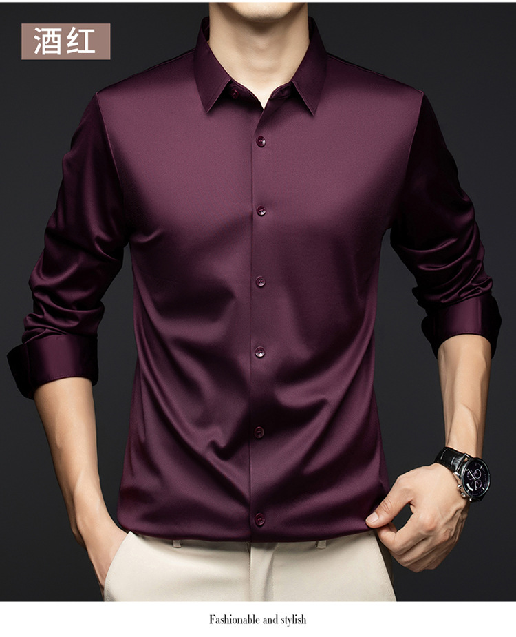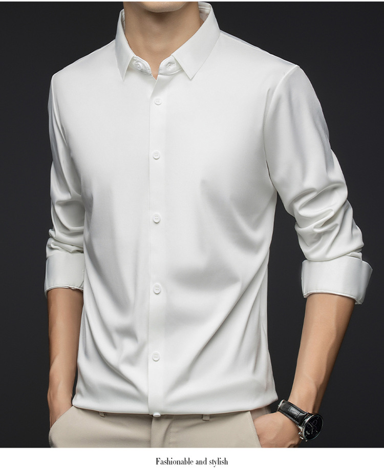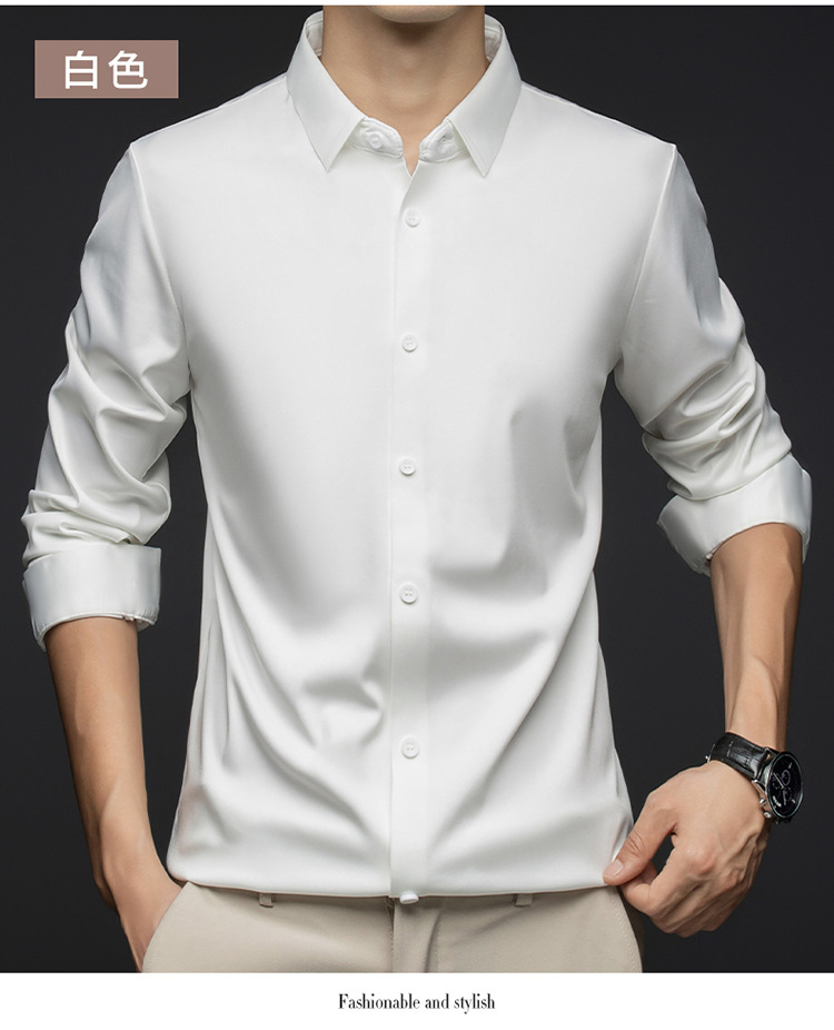 남성 셔츠 고급 원활한 주름 방지 비 다림질 가을 비즈니스 통근 패션 단색 긴 소매 셔츠 남성 도매스토어 가기