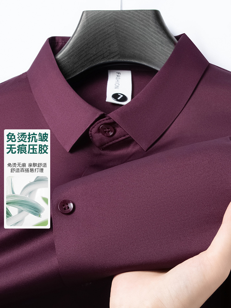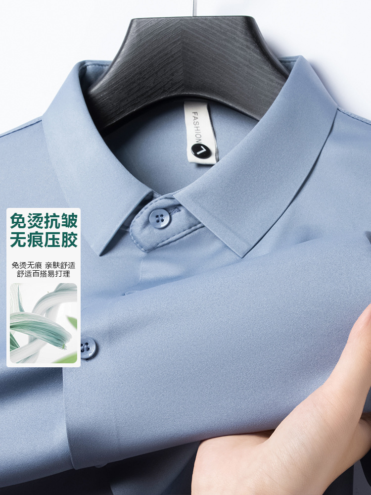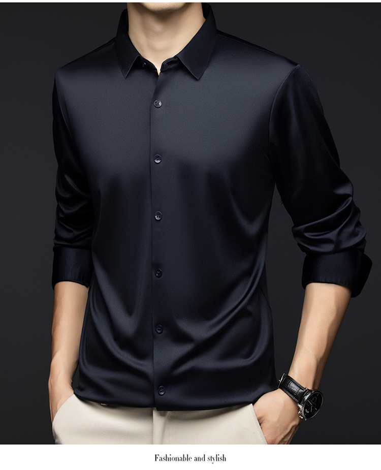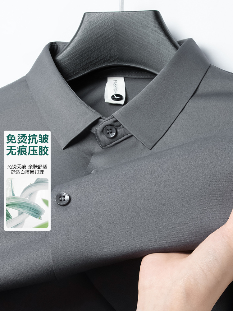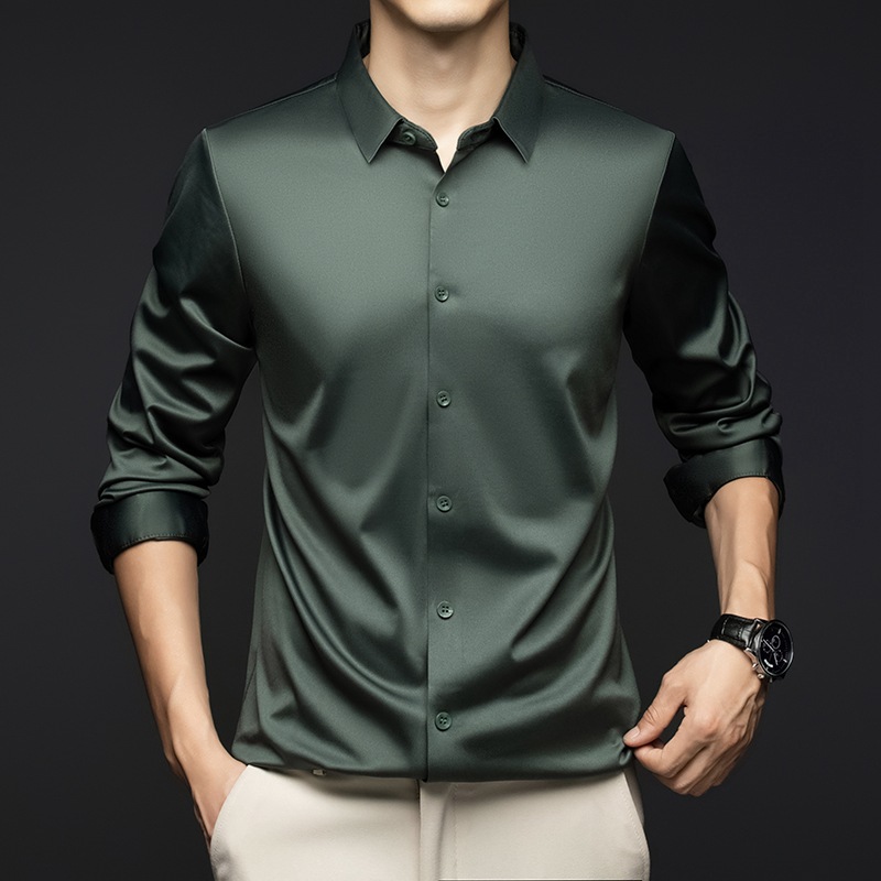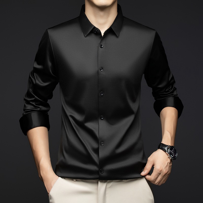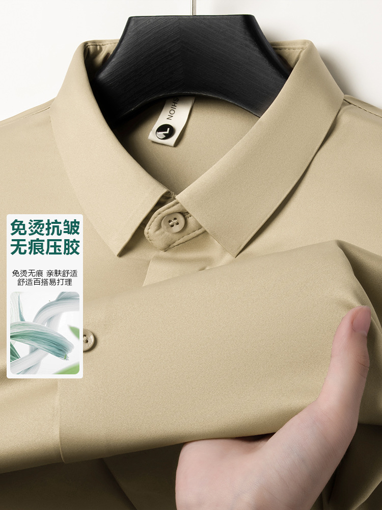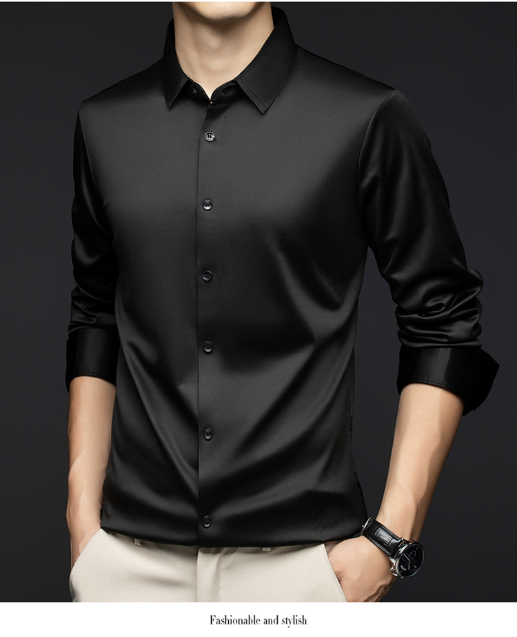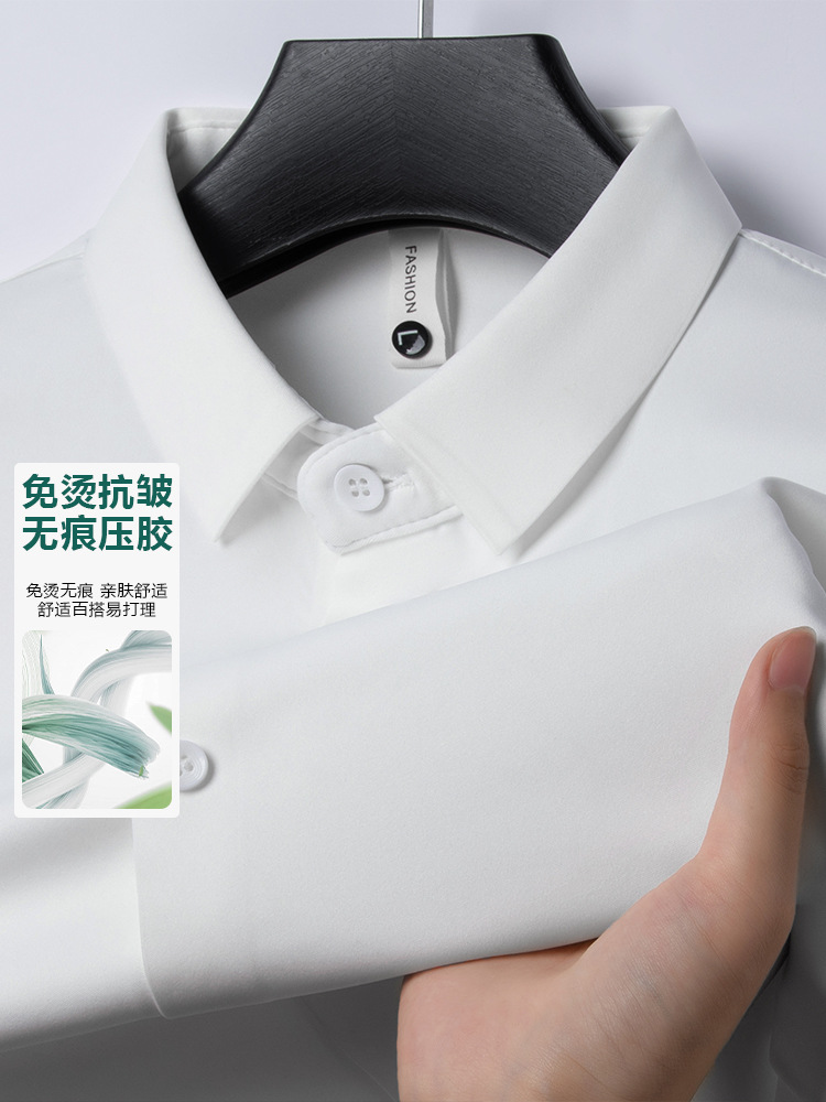 남성 셔츠 고급 원활한 주름 방지 비 다림질 가을 비즈니스 통근 패션 단색 긴 소매 셔츠 남성 도매스토어 가기
