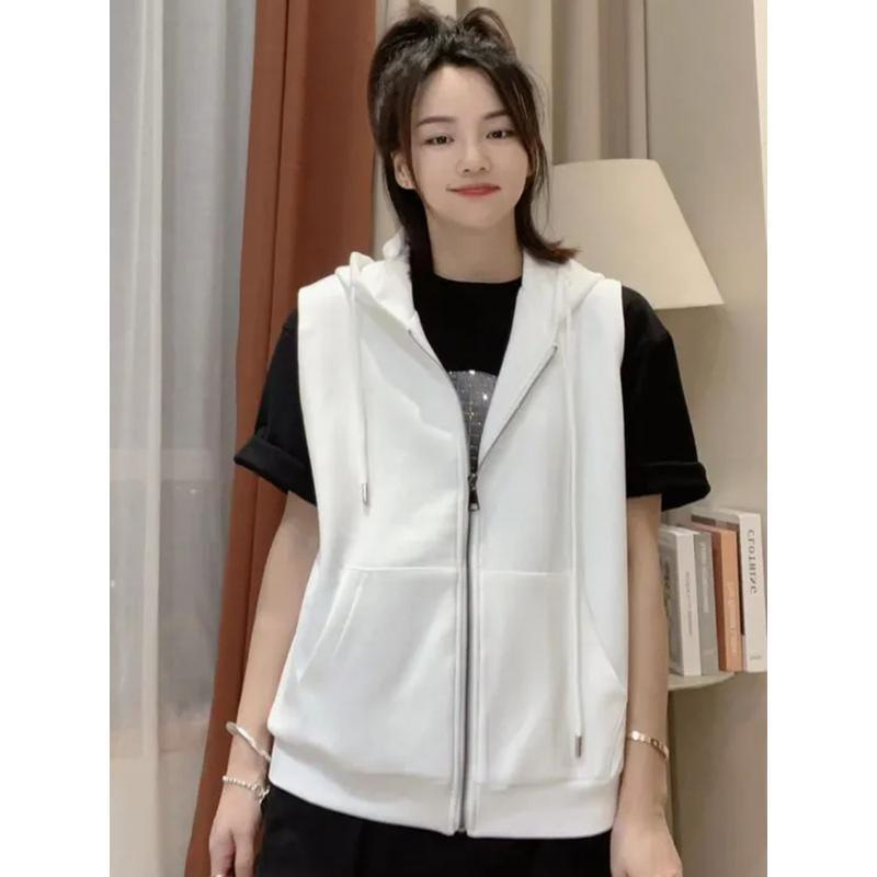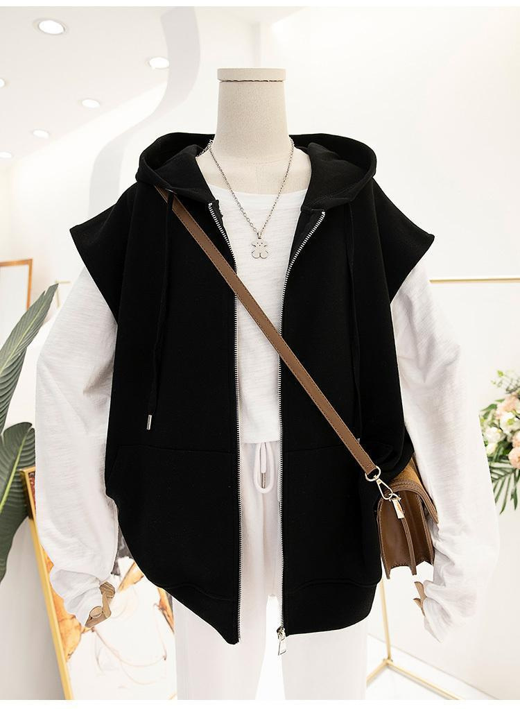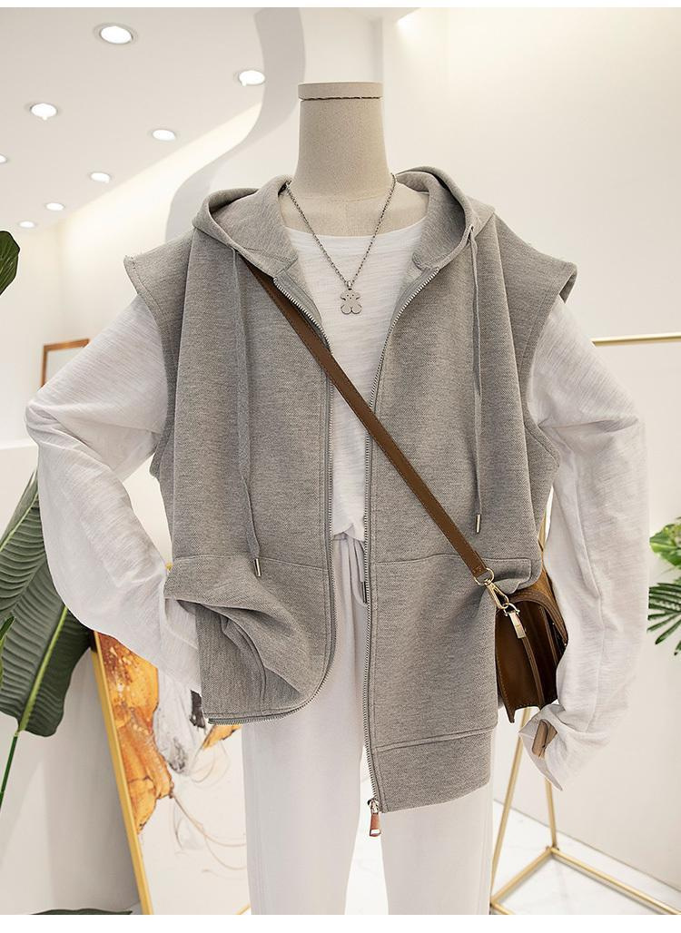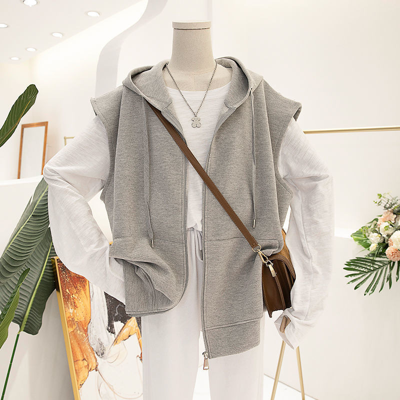 무료 배송 봄과 가을 얇은 후드 카디건 조끼 재킷 여성 디자인 센스 통통녀 10.00 kg-150.00 kg 느슨한 민소매 조끼